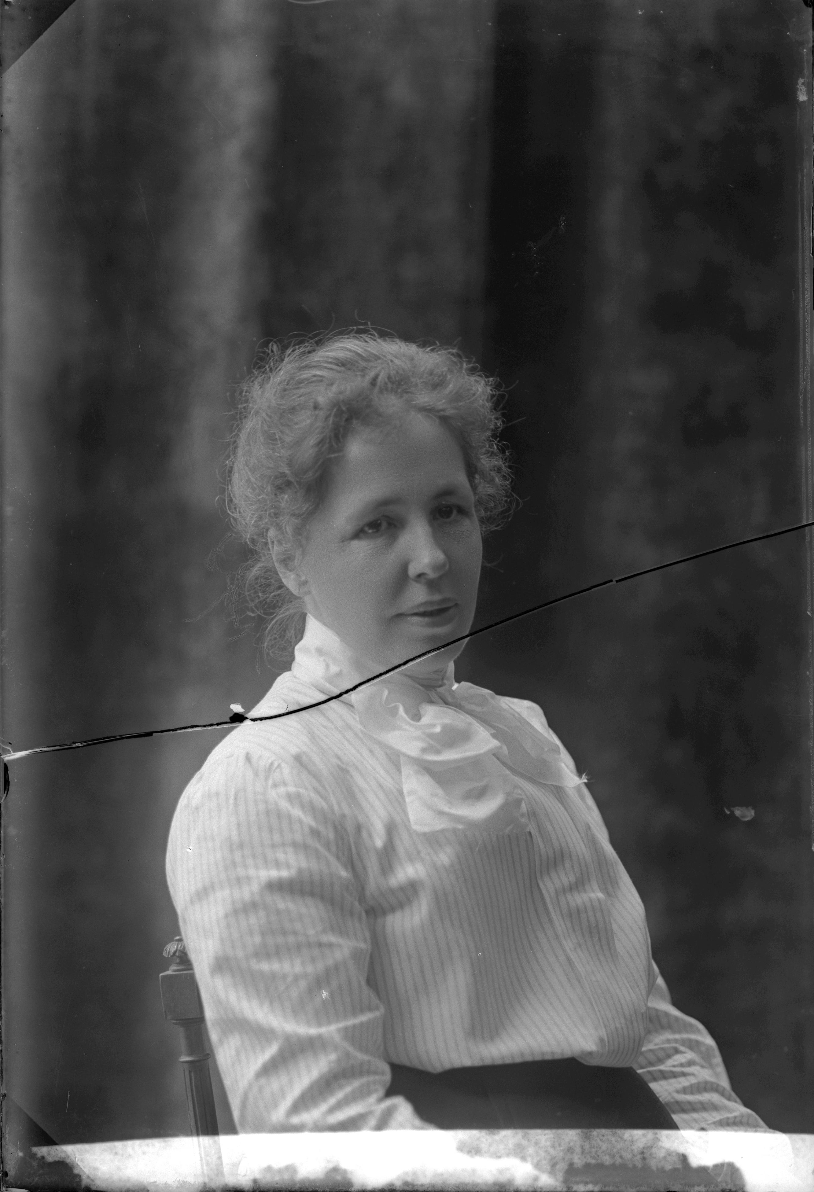 Beskrivning: Porträtt i halvfigur av fru Hagström.