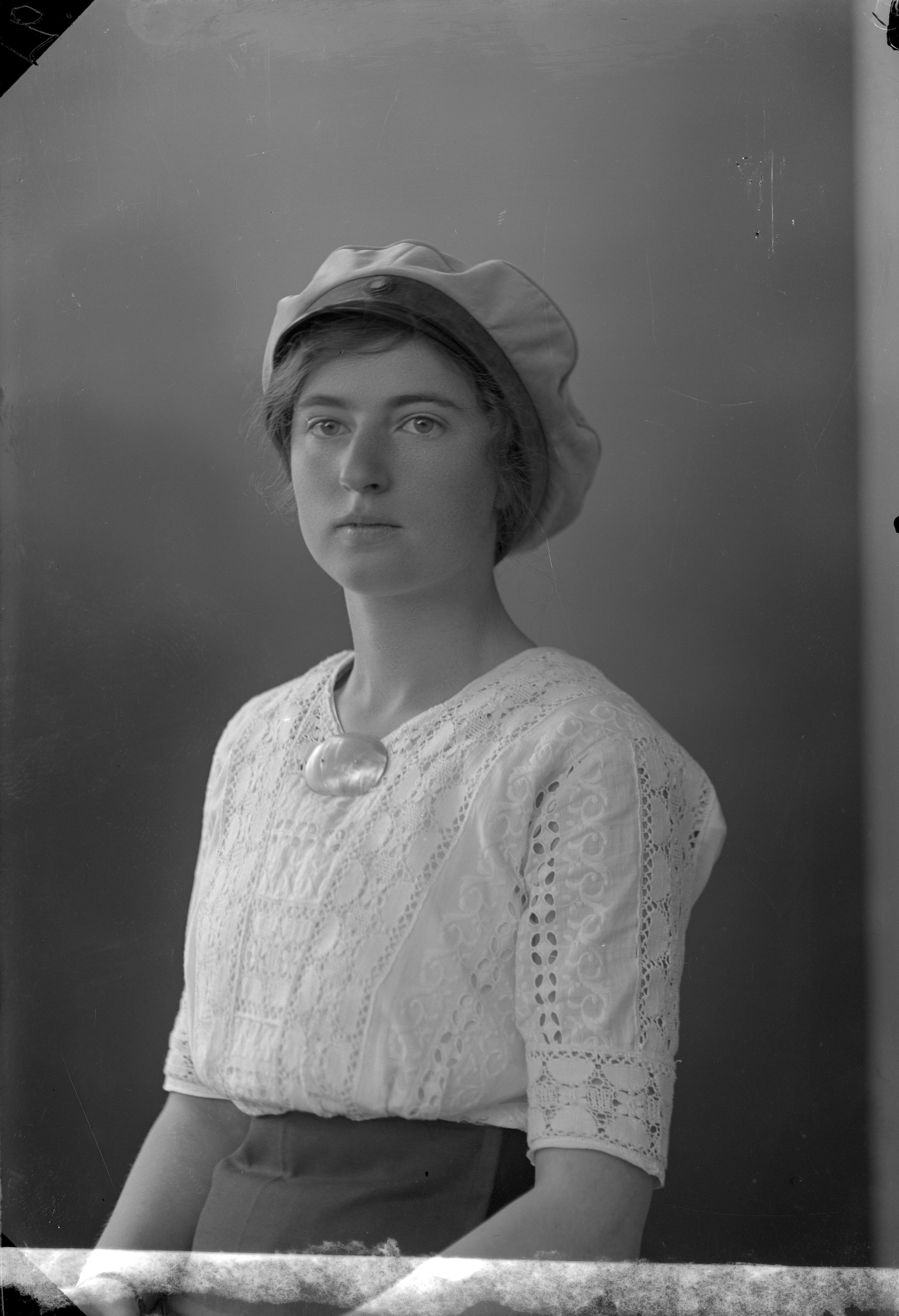 Beskrivning: Porträtt i halvfigur av Siri Eneborg i studentmössa.