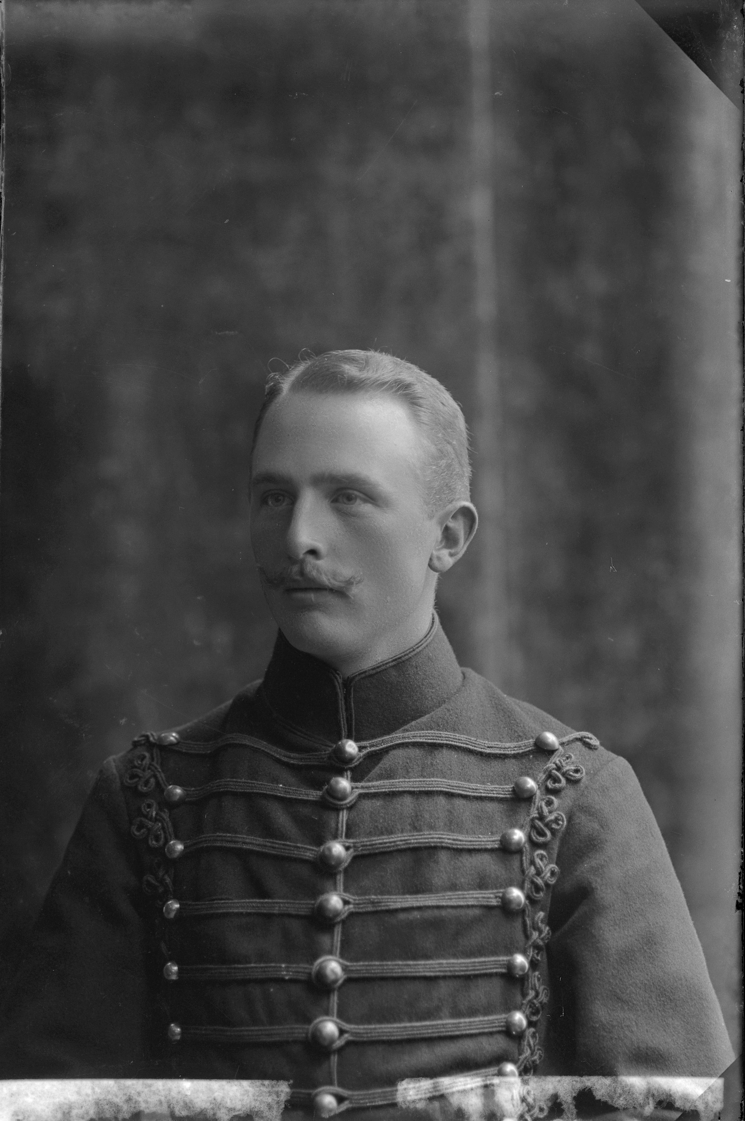 Beskrivning: Porträtt i halvfigur av militären Axel Andersson i uniform.