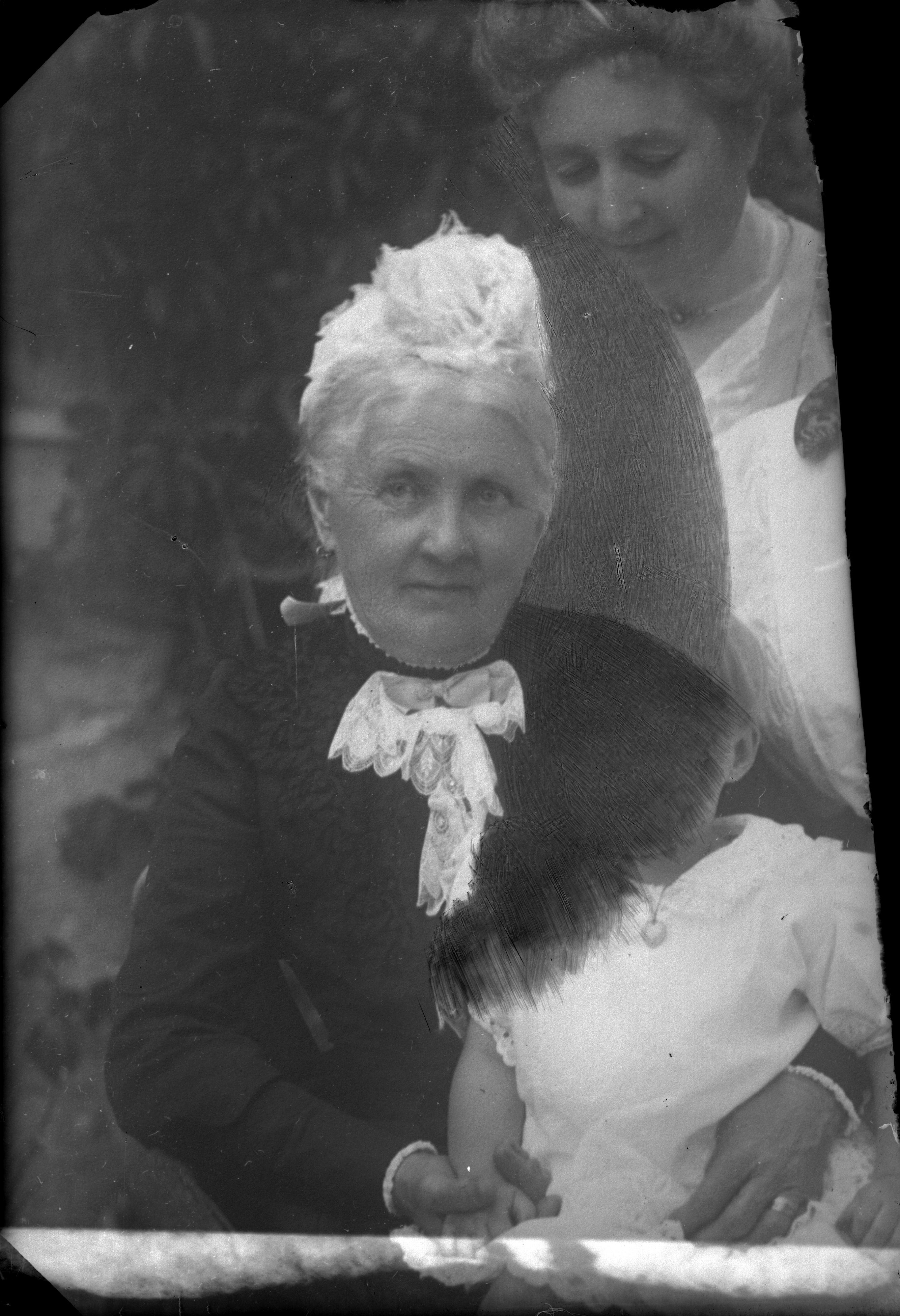Beskrivning: Porträtt i halvfigur av oidentifierad kvinna. Reprofotografi beställt av fru Giese.
