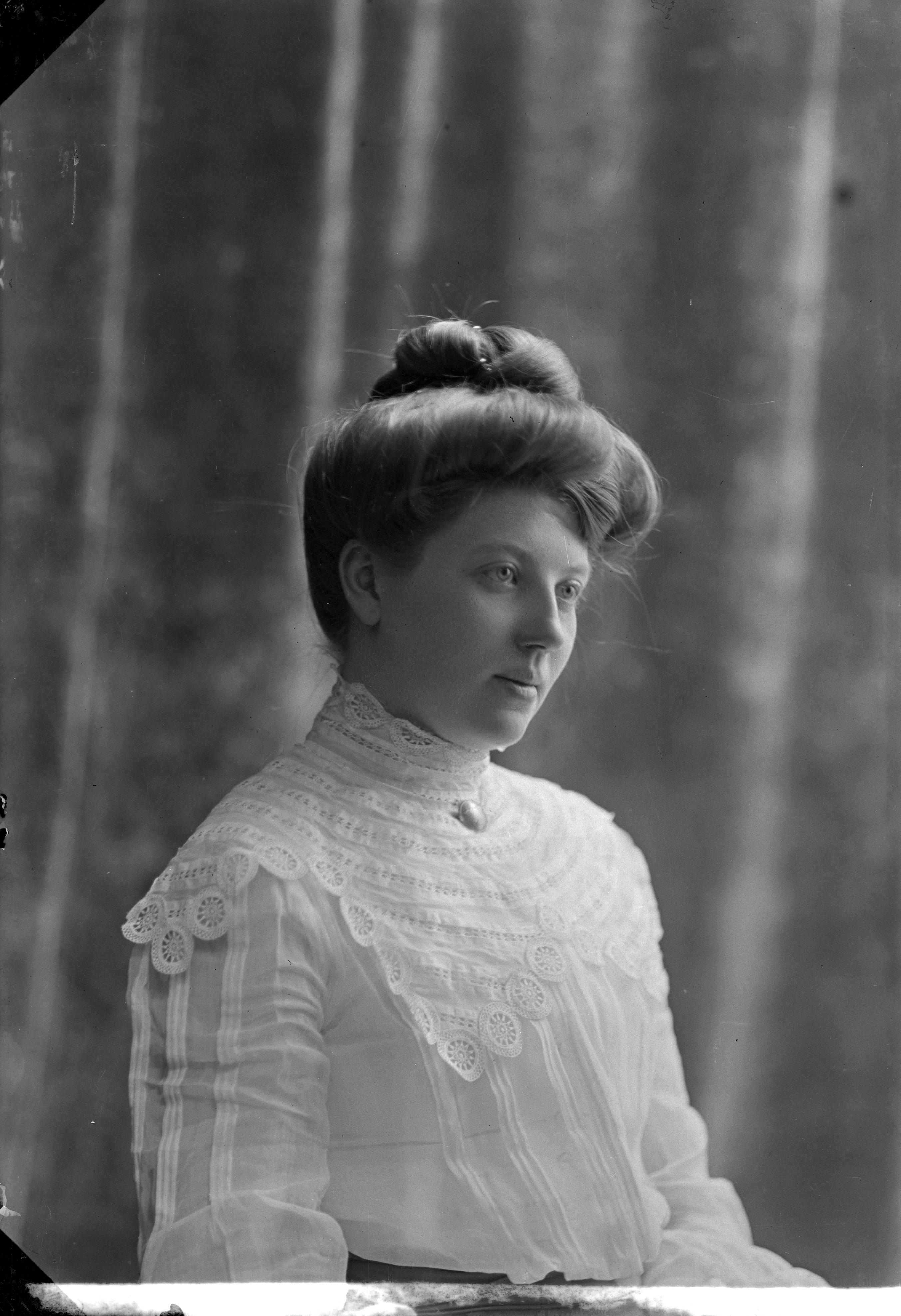 Beskrivning: Porträtt i halvfigur av Ellen Jeppson.
