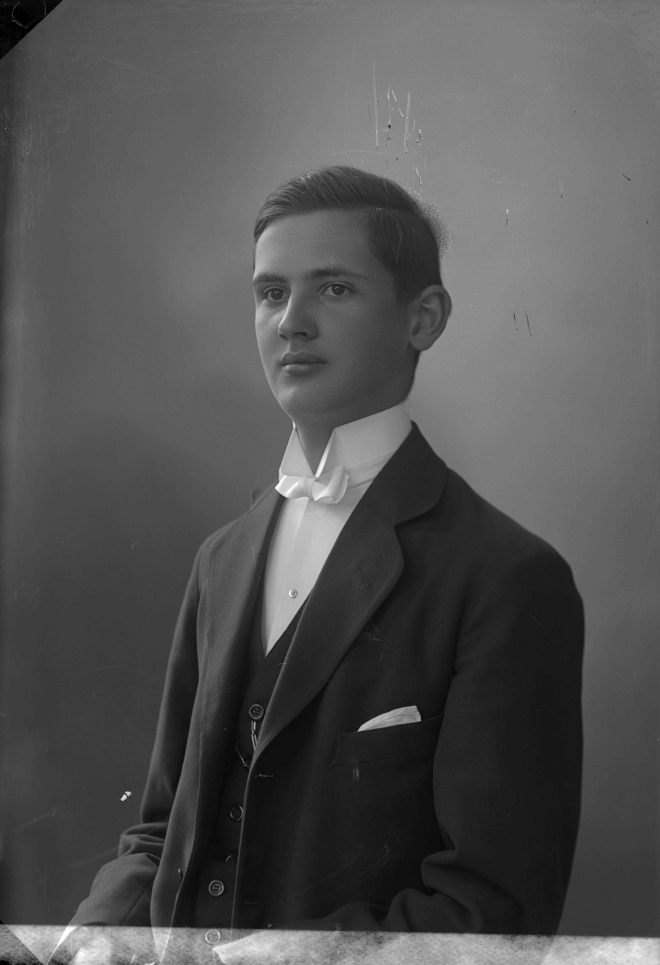 Porträtt i halvfigur av Gilbert Lundvall, son till grosshandlare och sjökapten Johan Oscar Lundvall (1847-1928).