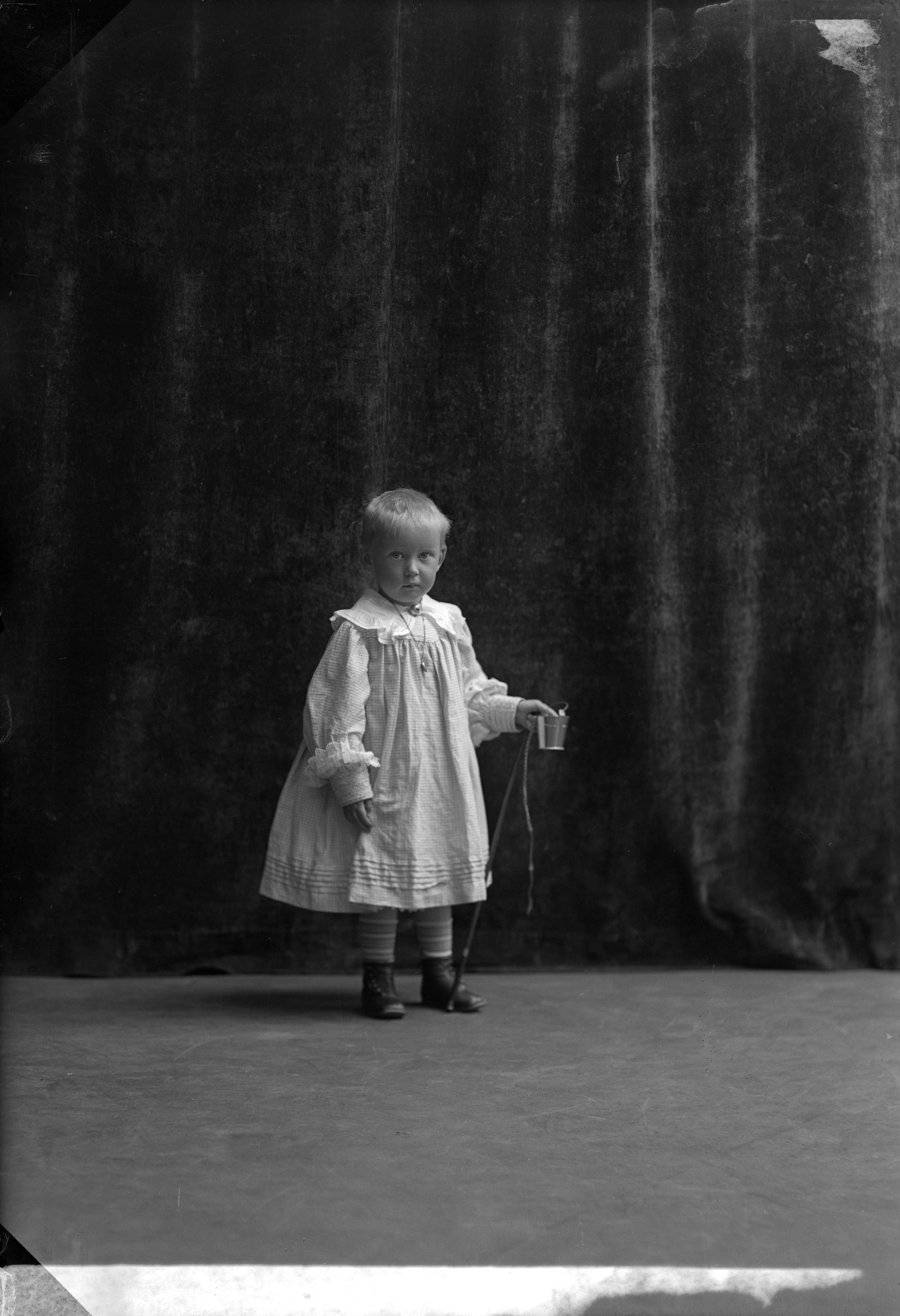 Porträtt i helfigur av friherrinnan Rappes dotter, hållande mugg.