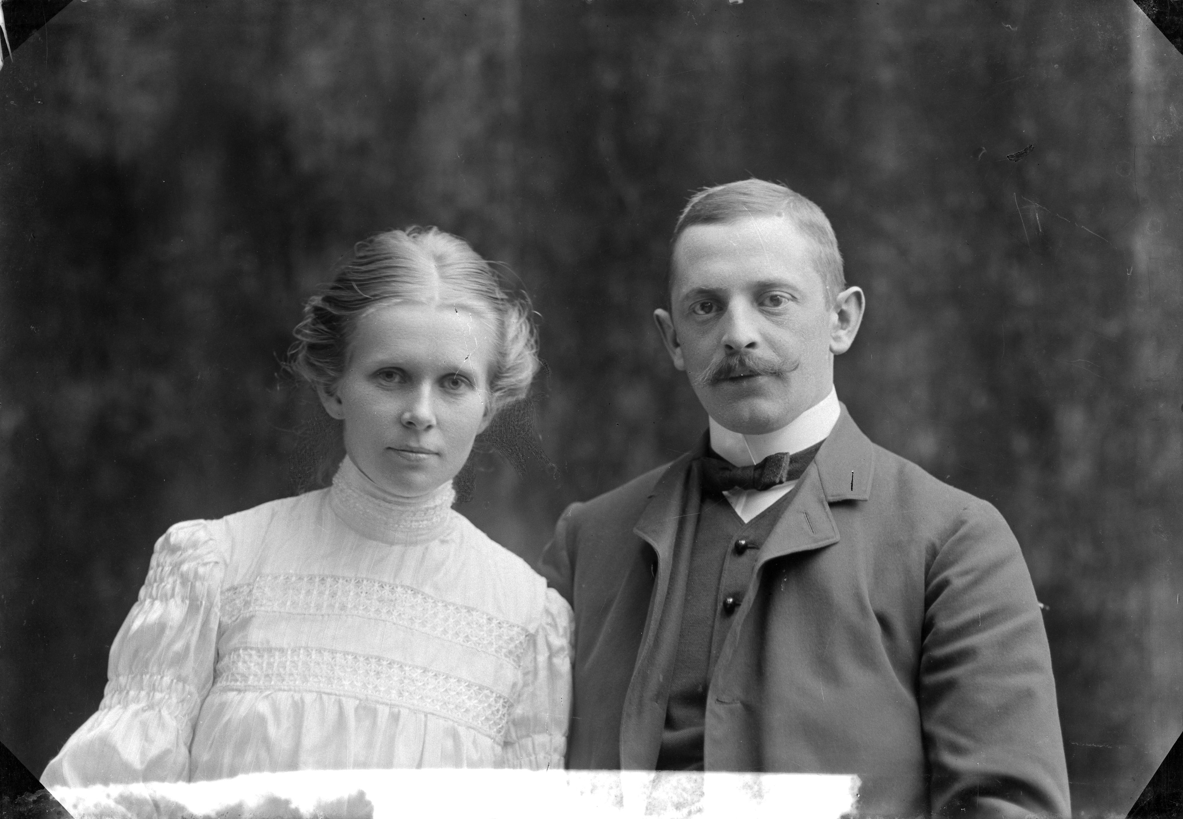 Porträtt i halvfigur av herr Lindgren med fru.