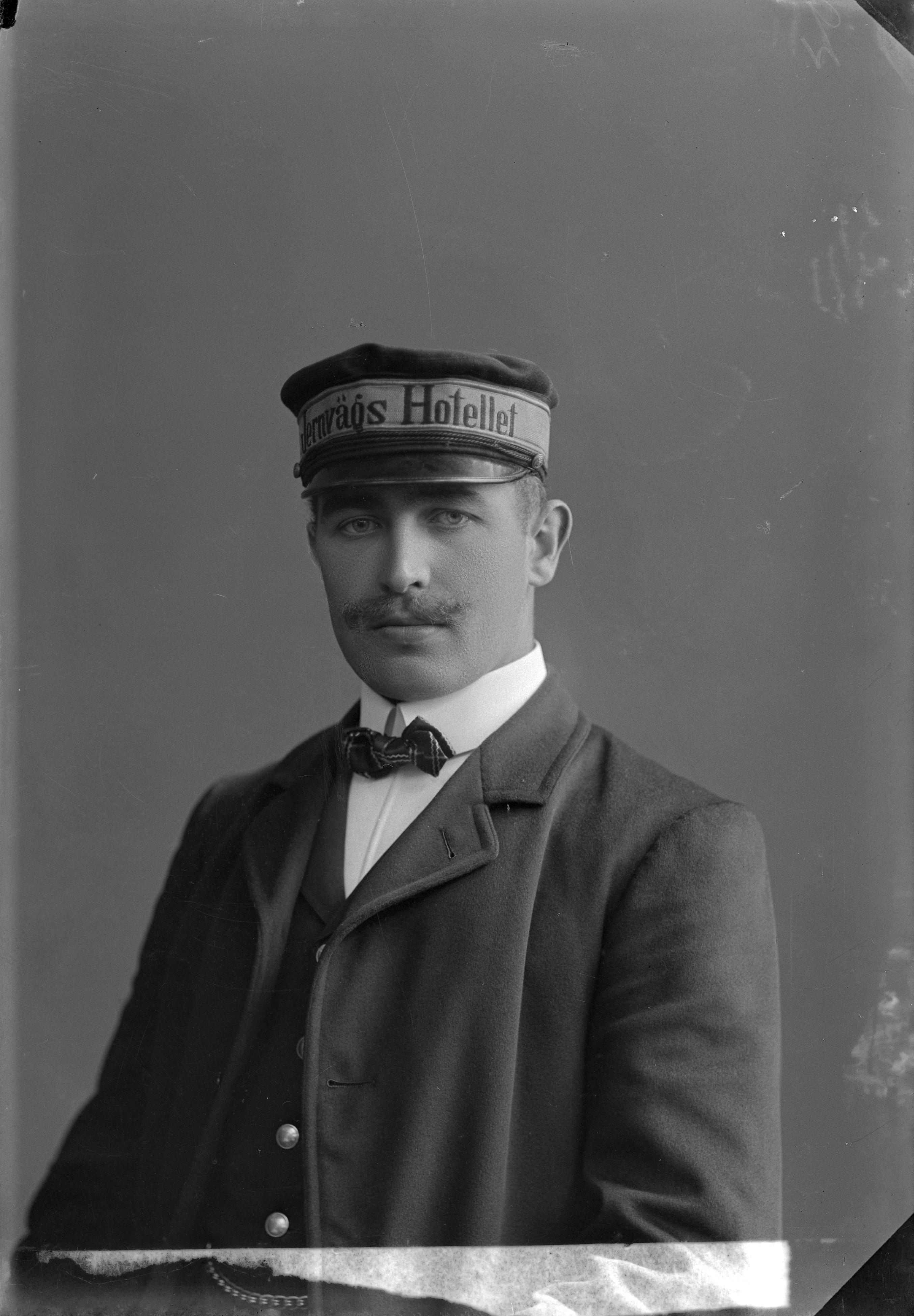 Porträtt i halvfigur av herr Rygård med ros på kavajslaget.