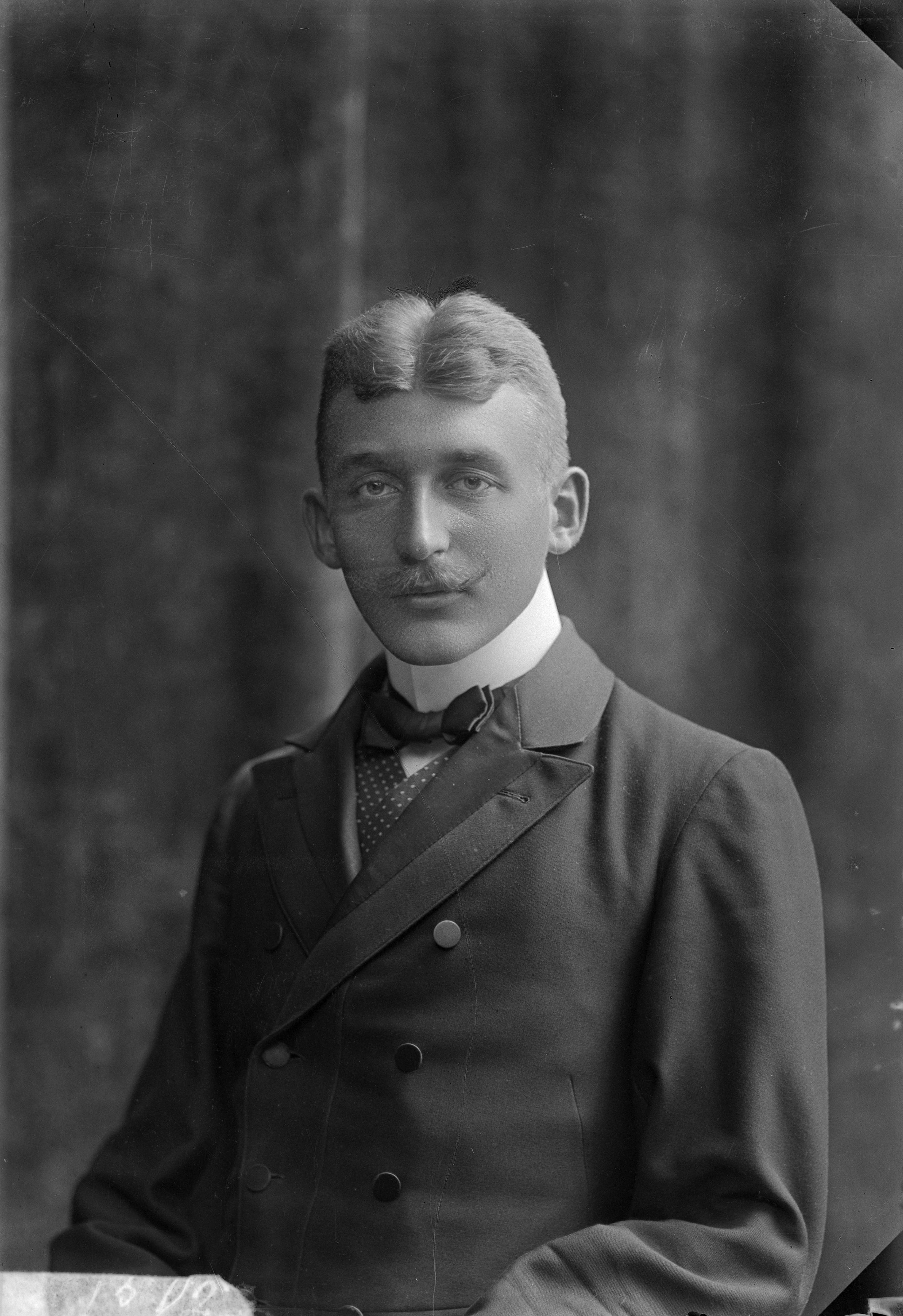 Beskrivning: Porträtt i halvfigur av odontologistudenten Olof Ragnar Olow.