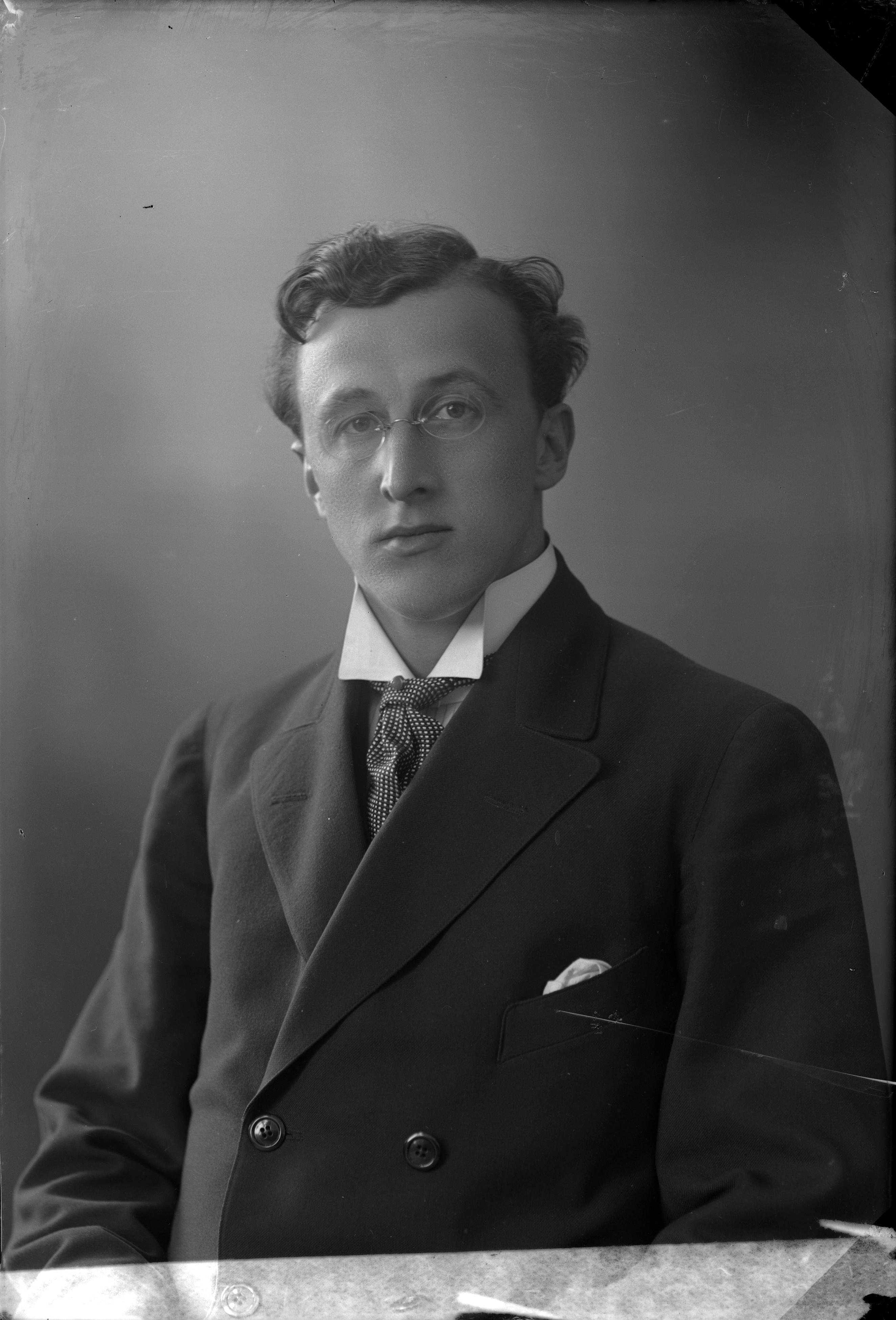 Beskrivning: Porträtt i halvfigur av oidentifierad student.