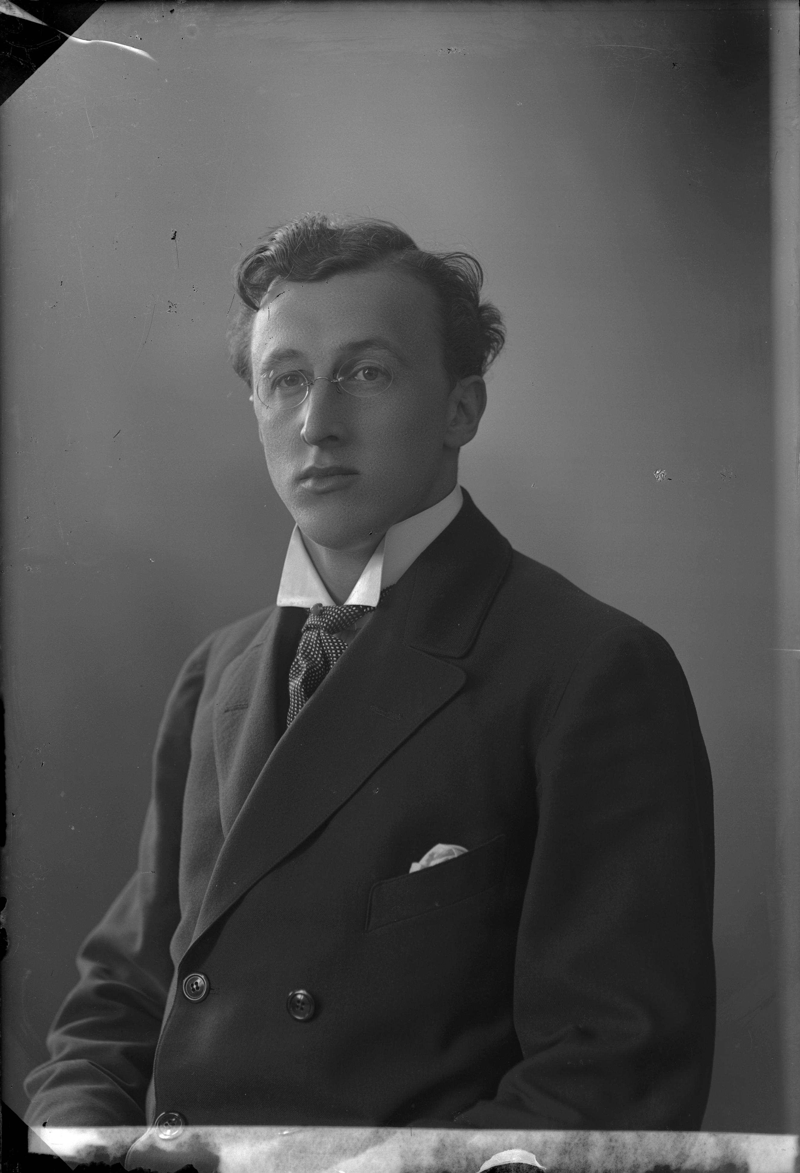 Beskrivning: Porträtt i halvfigur av oidentifierad student.