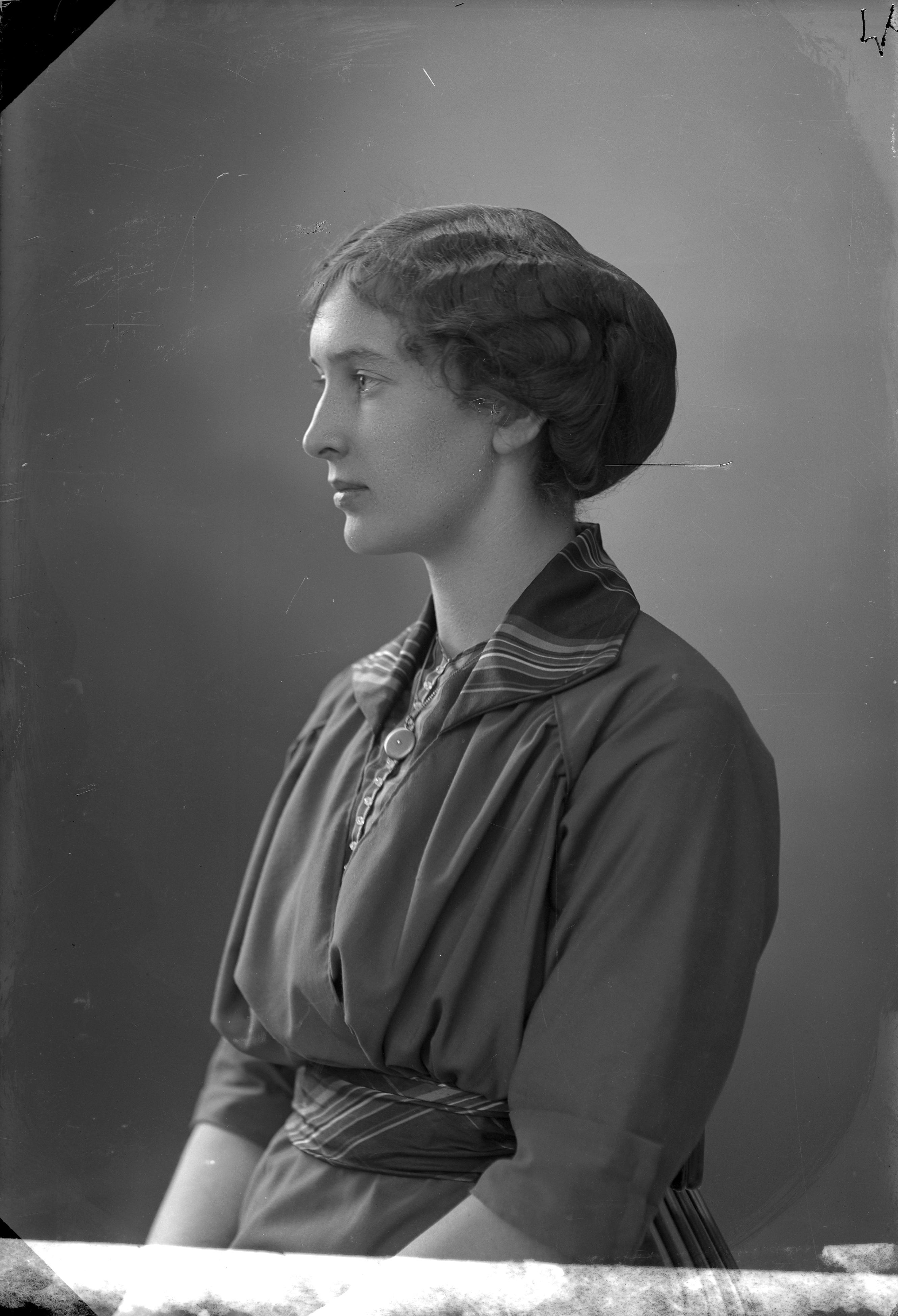 Porträtt i halvfigur, profil, av Agnes Gunnarsson.