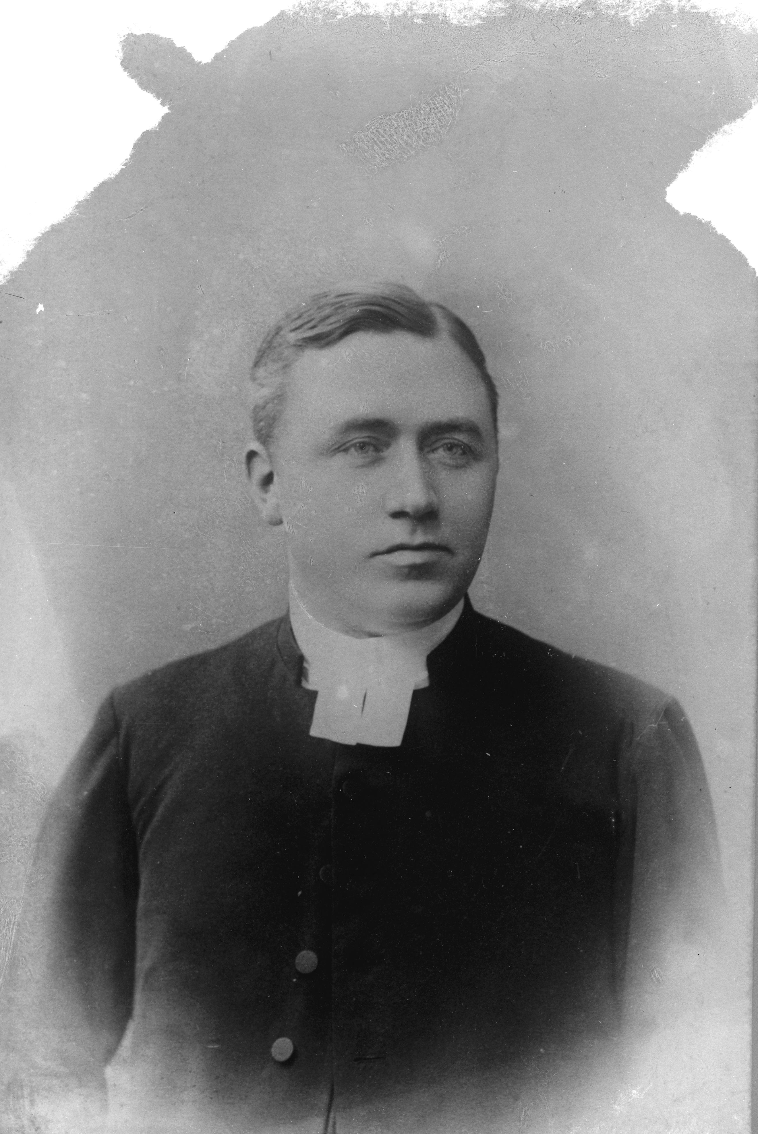 Porträtt i halvfigur av kyrkoherde, teologie doktor Carl Olaus Dahlin.
