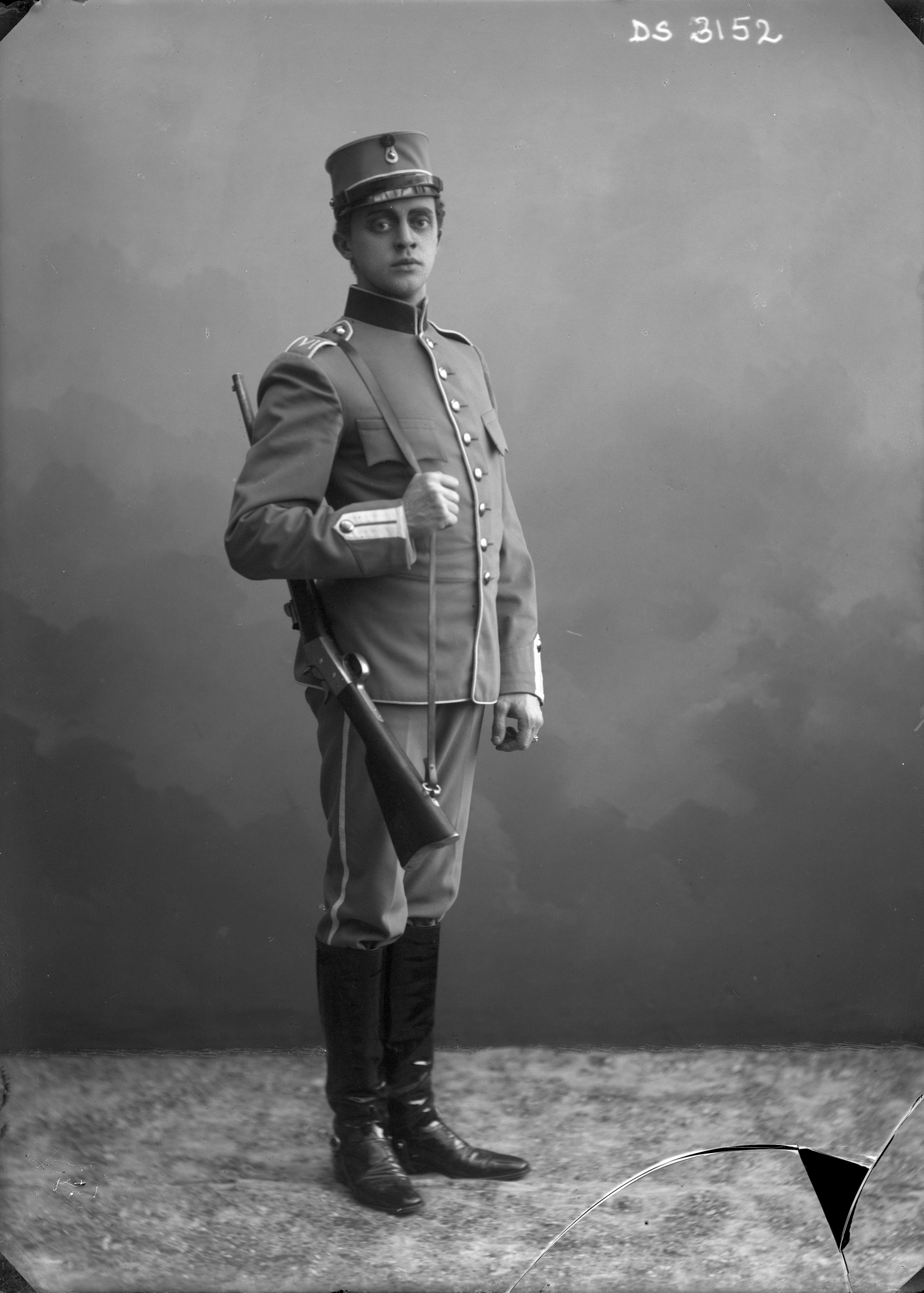 Beskrivning: Porträtt i helfigur av skådespelaren och teaterregissören Oscar Winge.