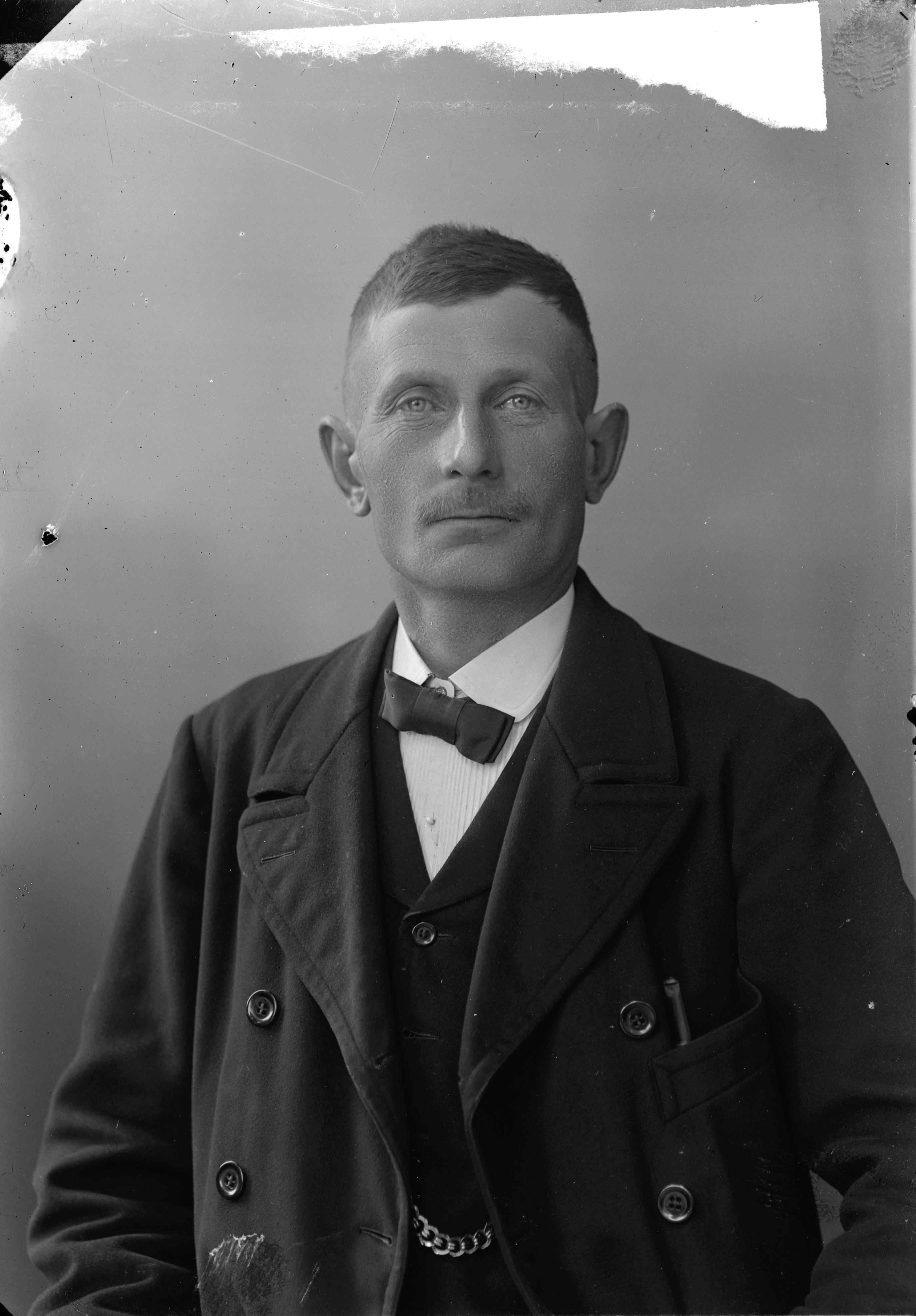 Beskrivning: Porträtt i halvfigur av Henning Nilsson.