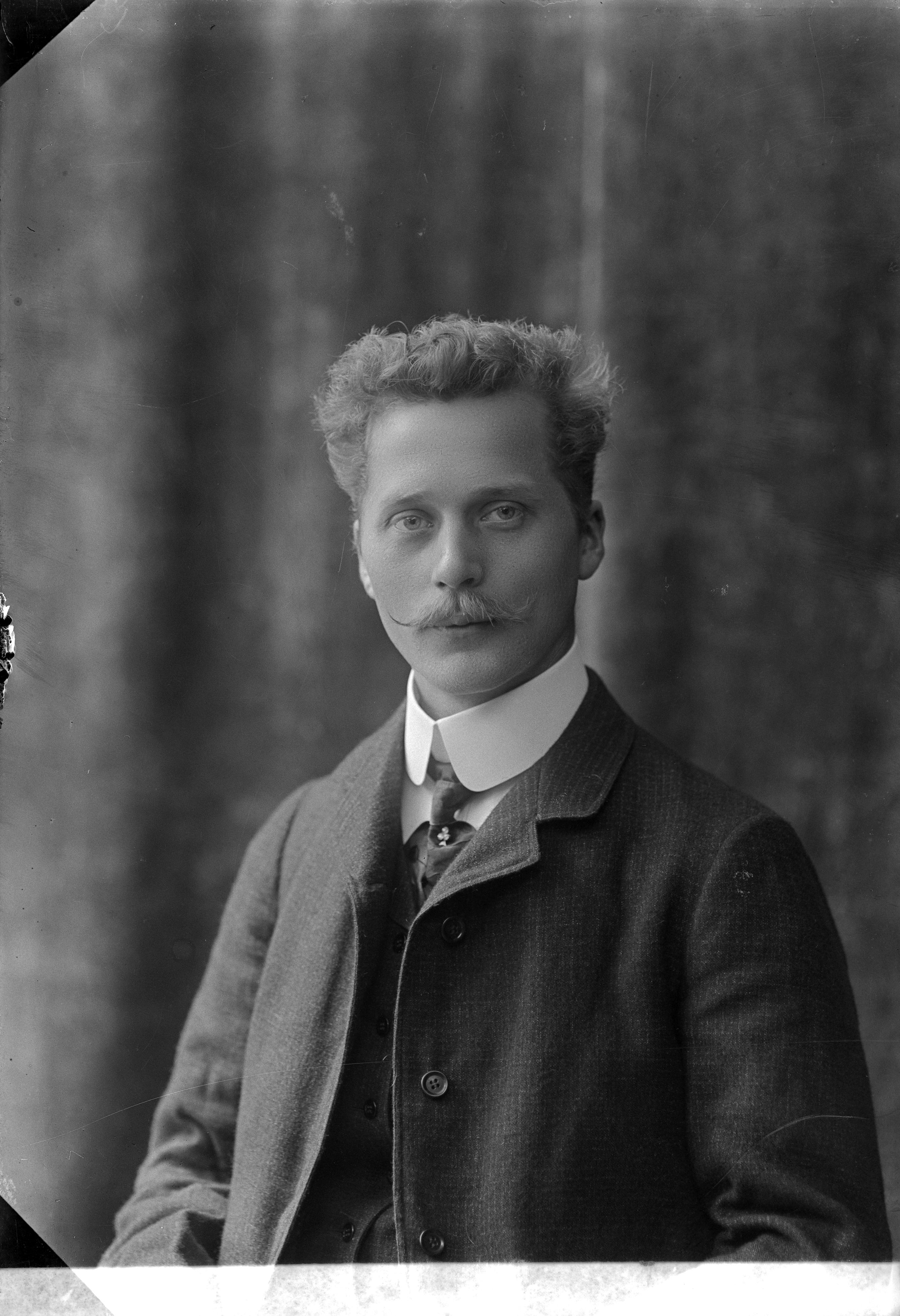 Beskrivning: Porträtt i halvfigur av Eric Axelsson.