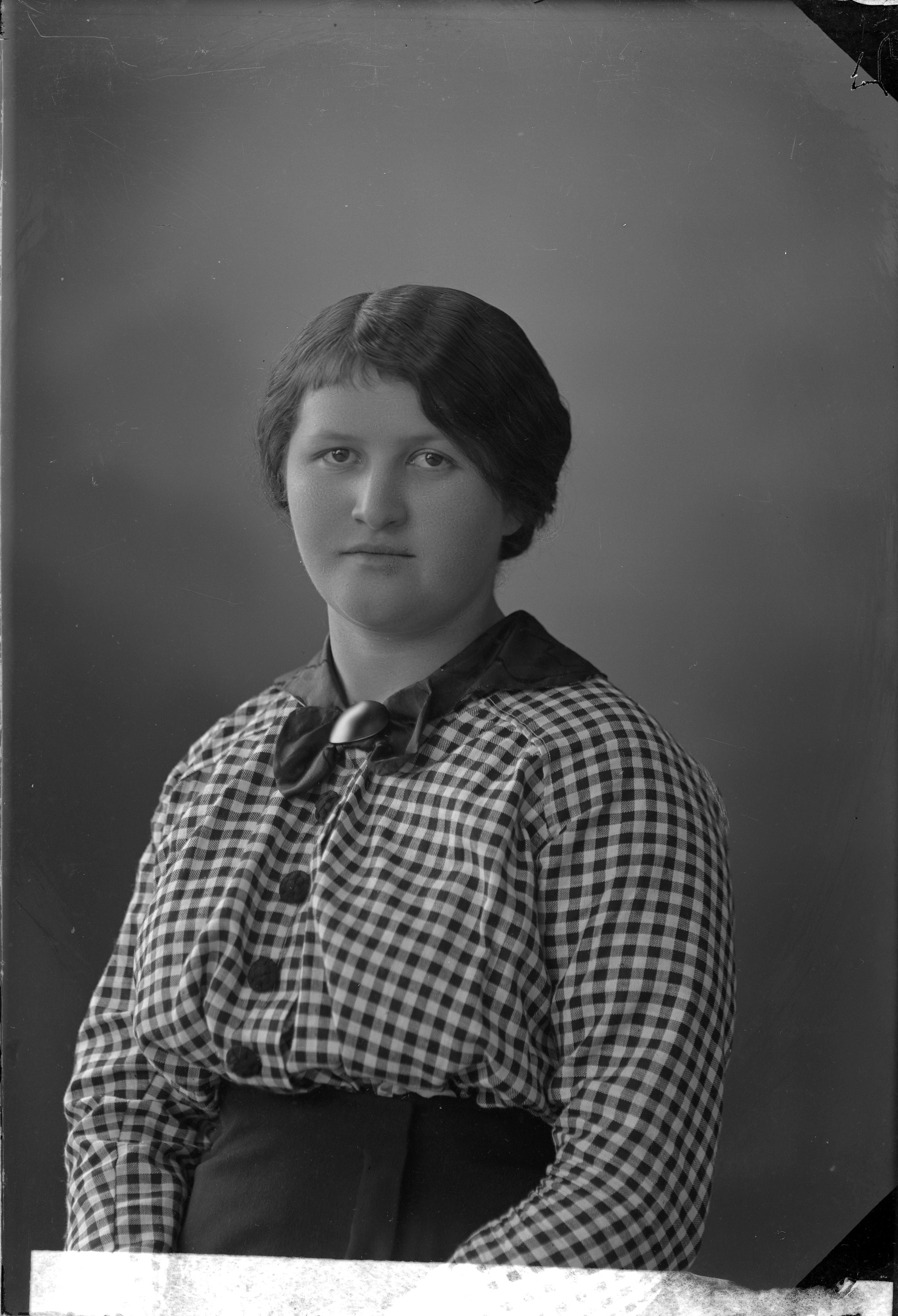 Beskrivning: Porträtt i halvfigur av Martha Lindgren.