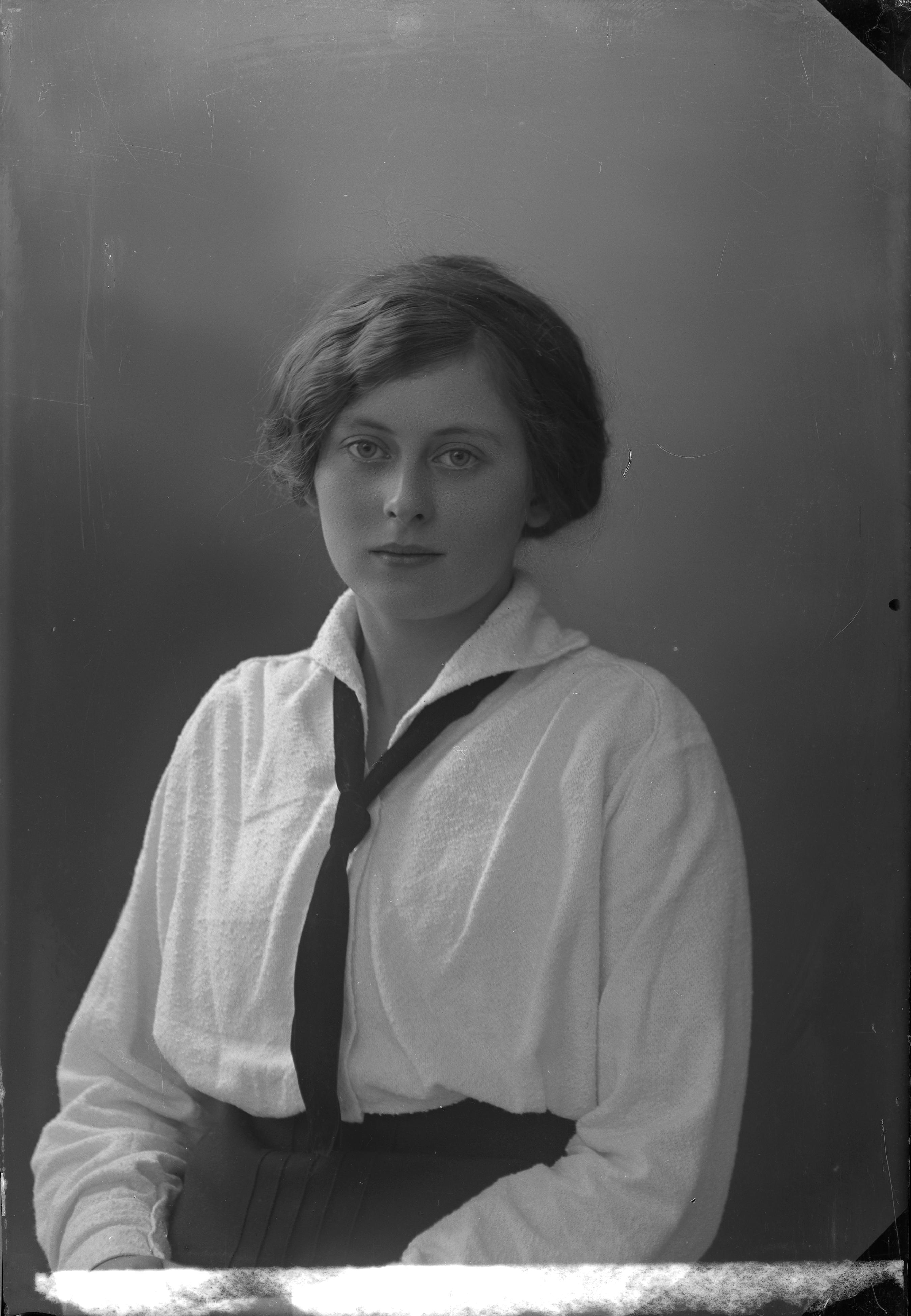 Beskrivning: Porträtt i halvfigur av Andréa Olsson.