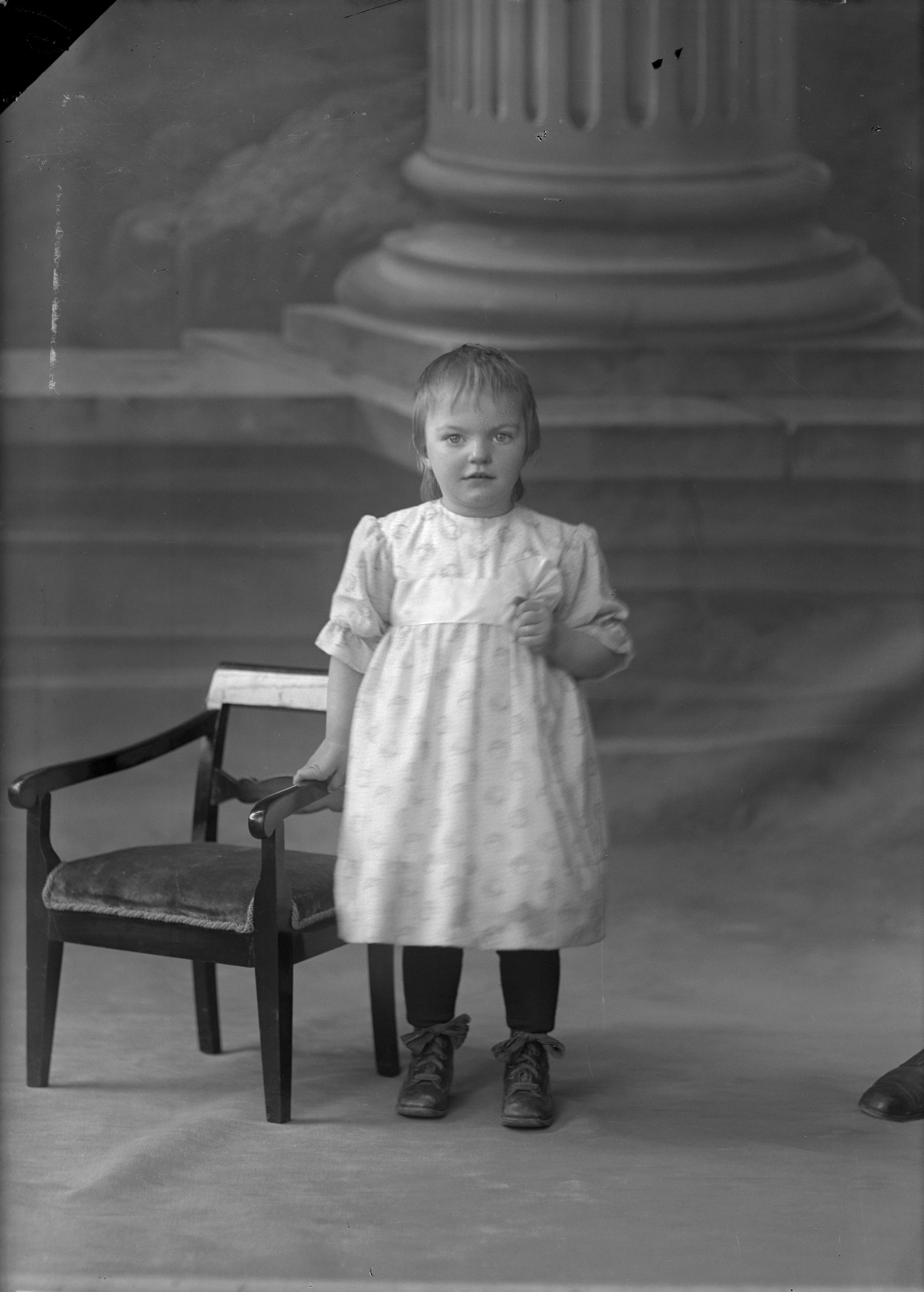 Beskrivning: Porträtt i helfigur av Eva Olsson.