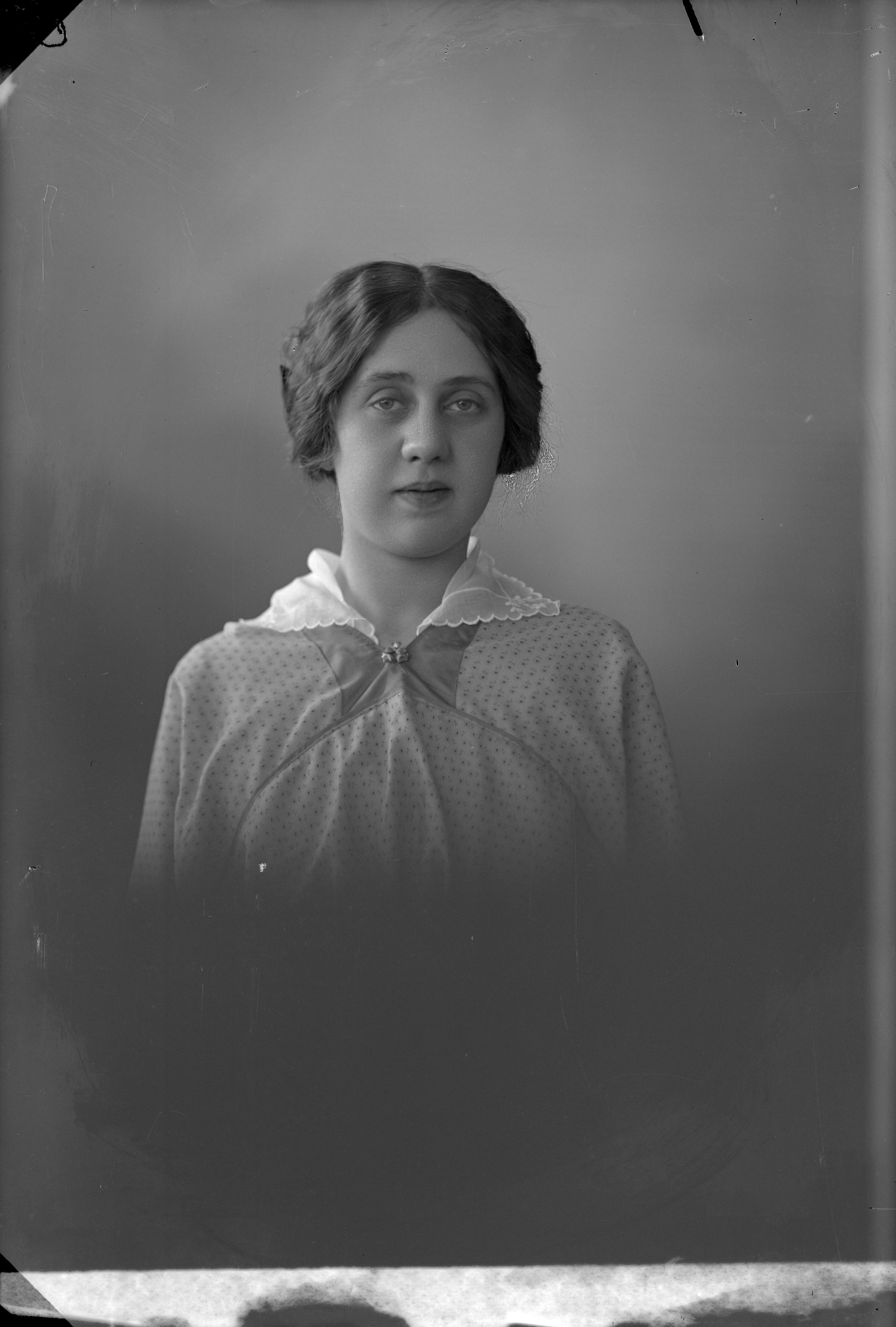 Beskrivning: Porträtt i halvfigur av Teresia Larsson.