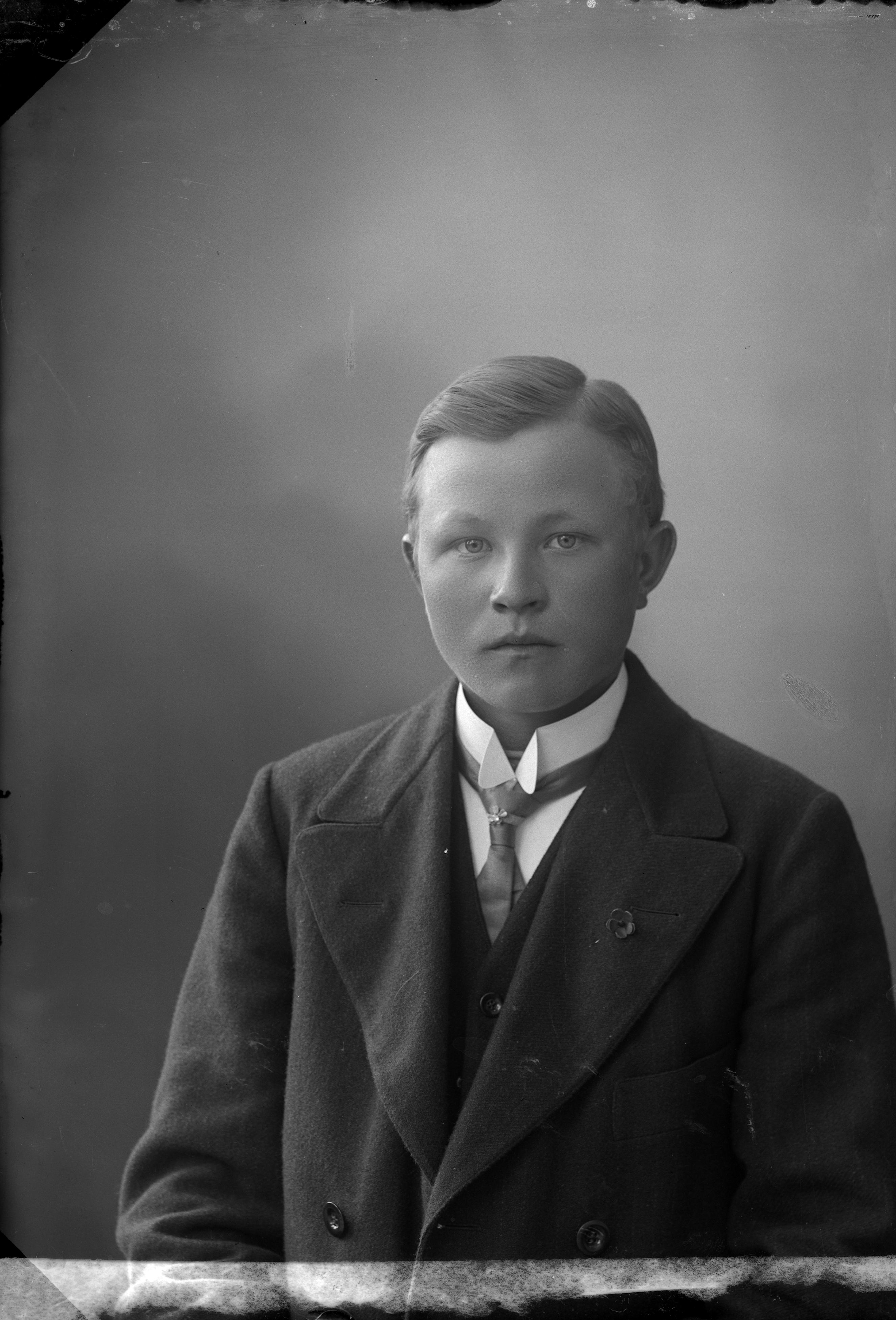 Beskrivning: Porträtt i halvfigur av Herman Karlsson.