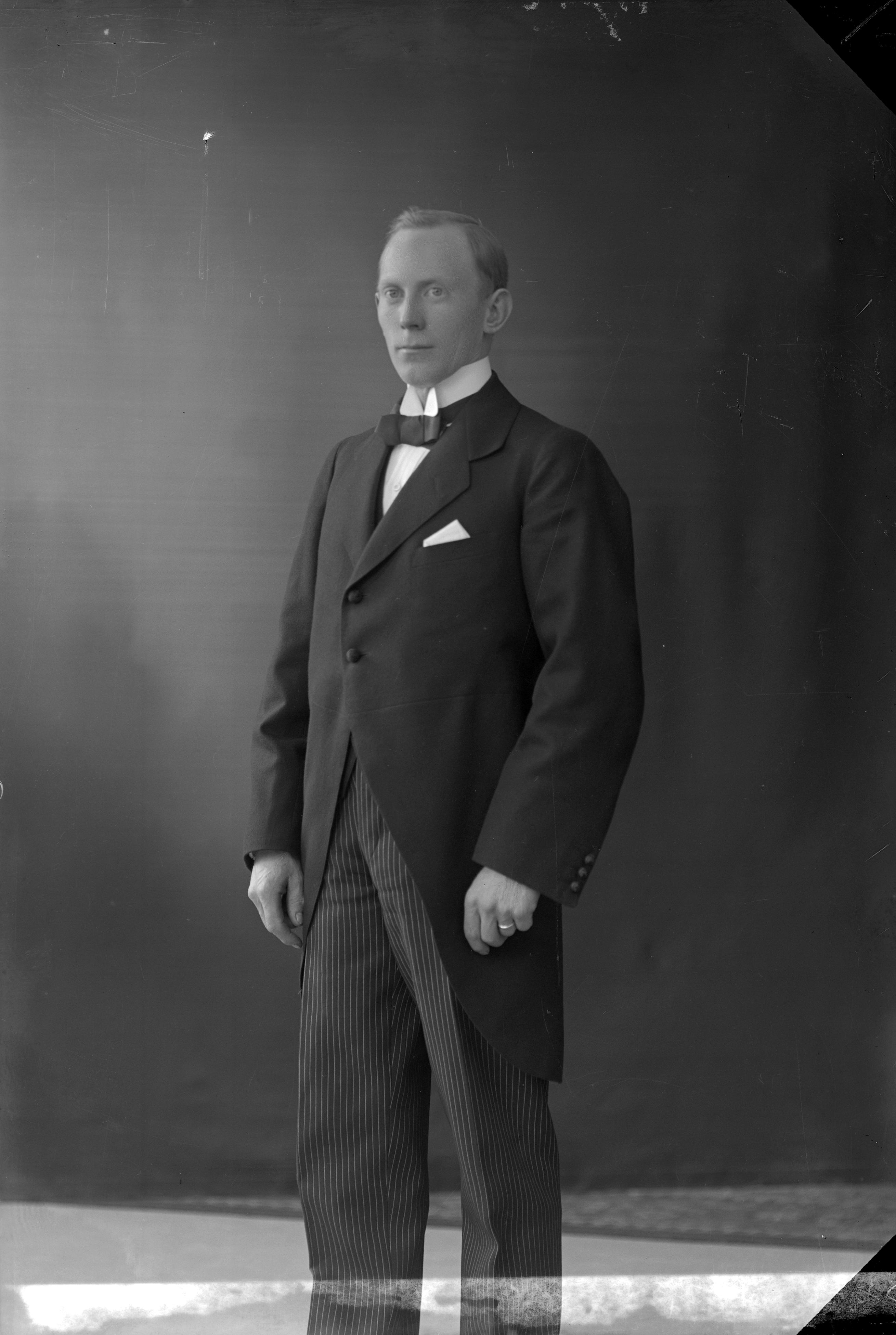 Beskrivning: Porträtt i helfigur av Gustaf Åberg.
