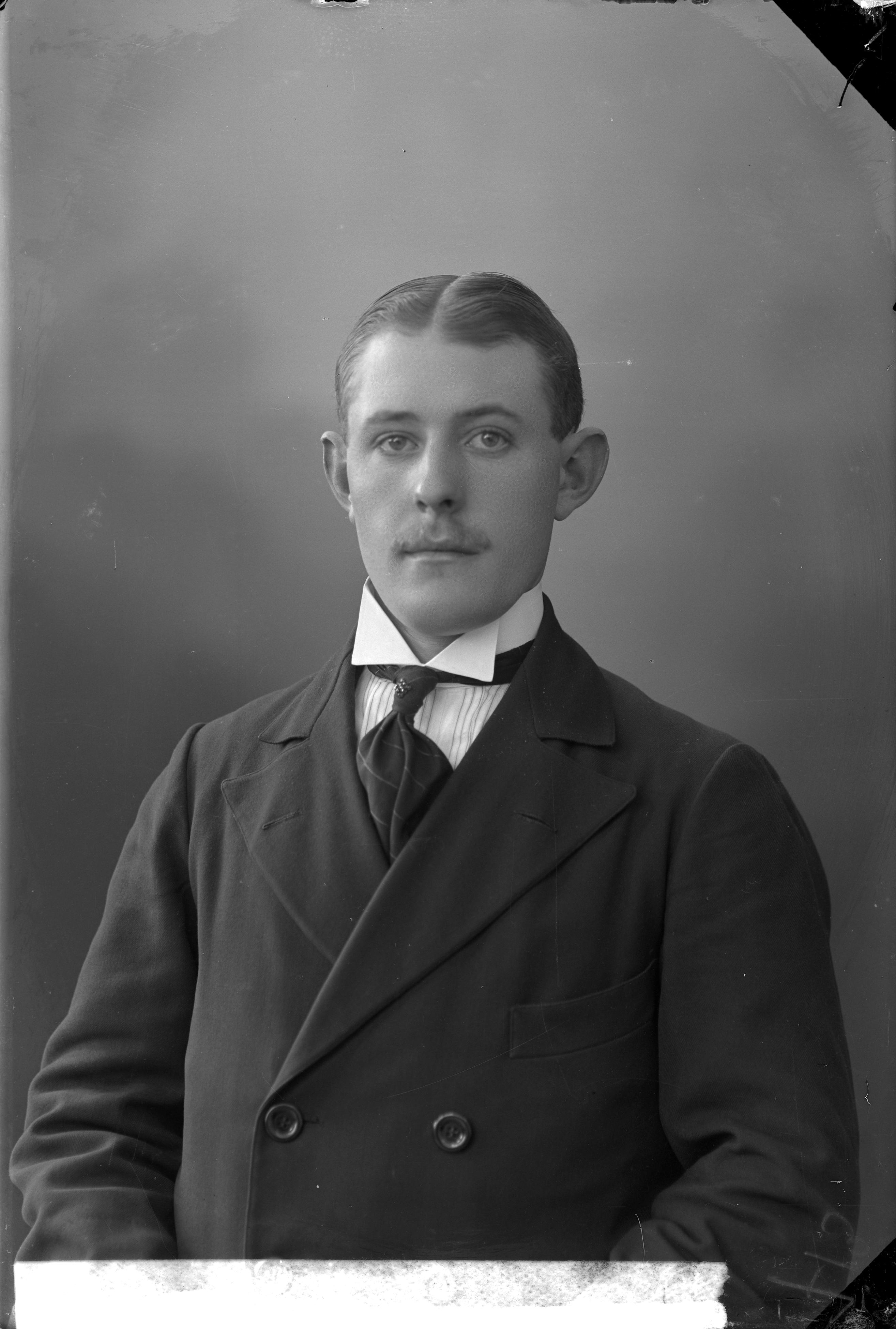 Beskrivning: Porträtt i halvfigur av Ivar Persson.