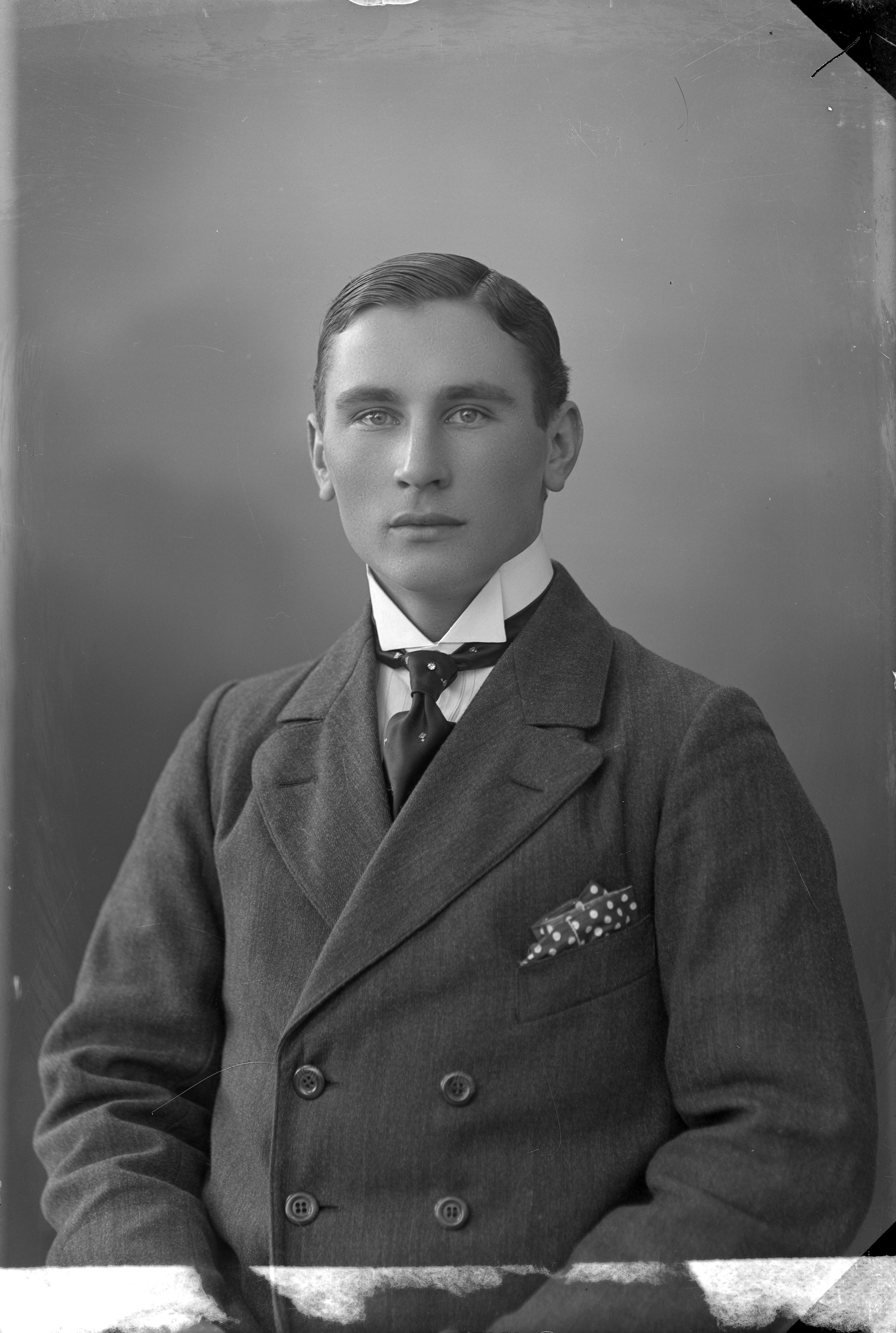 Beskrivning: Porträtt i halvfigur av Sigfrid Jönsson.