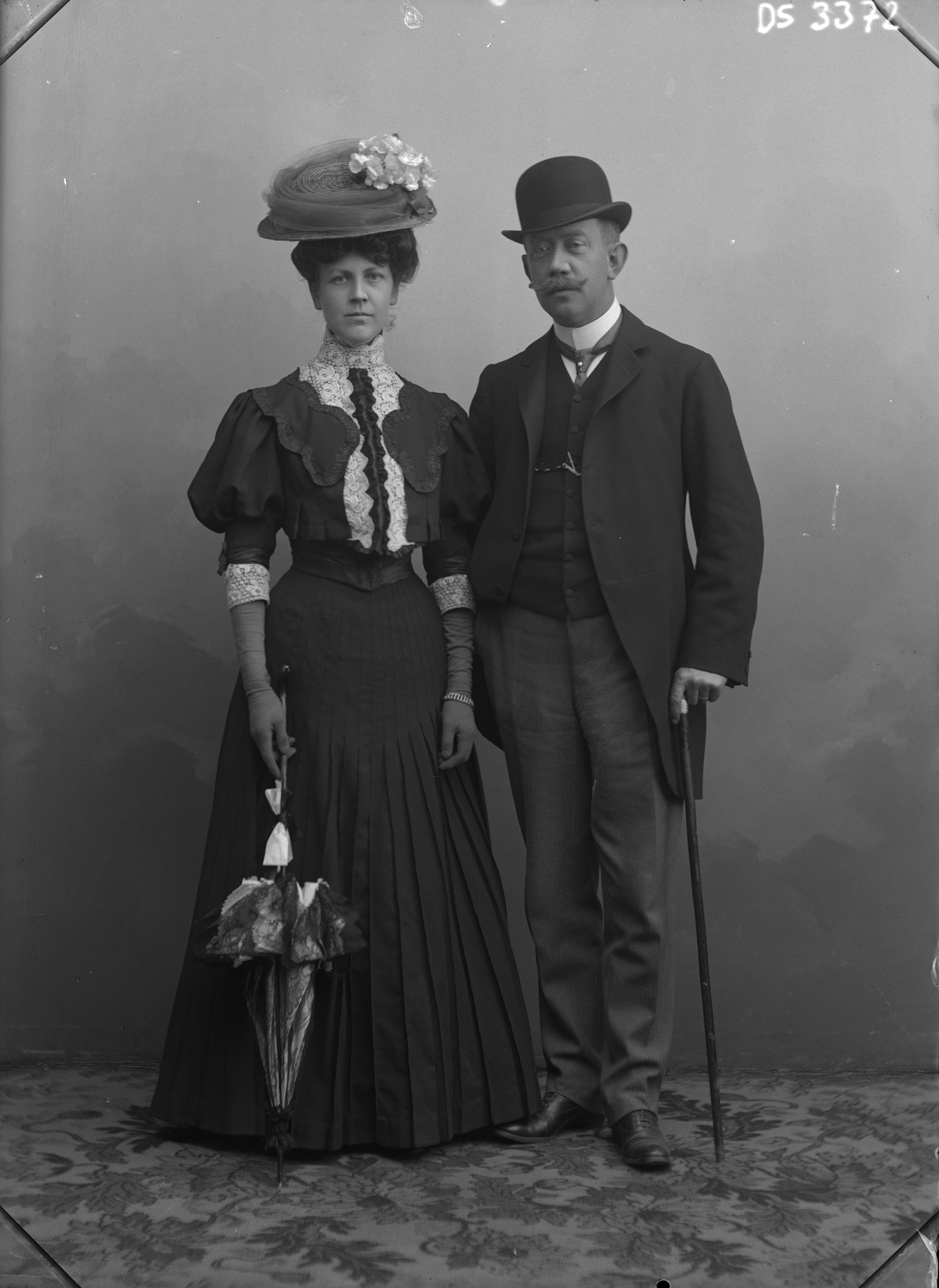 Porträtt i helfigur av grosshandlare och konsul Carl August Hommerberg med hustrun Jenny.