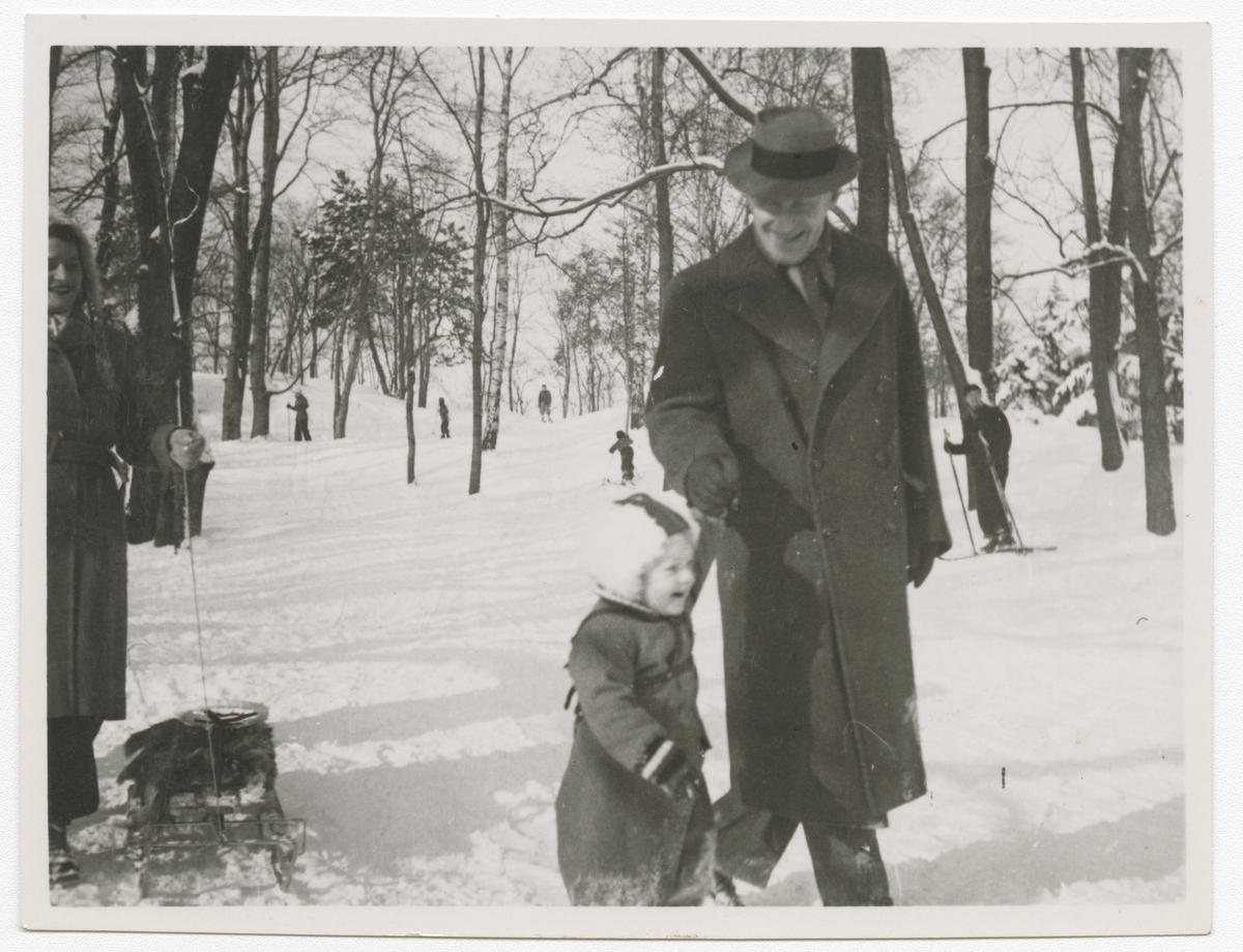 Vinter i Stockholm. Walter Lindenthal, en kvinna och ett barn.