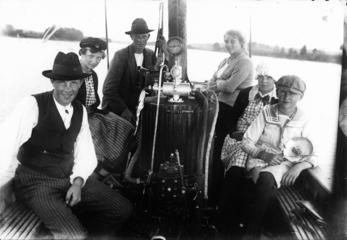 Personerna är från vänster: okänd, Signe Lagerkvist, Petrus Nilsson, okänd, Märta Nilsson och Bror Nilsson.