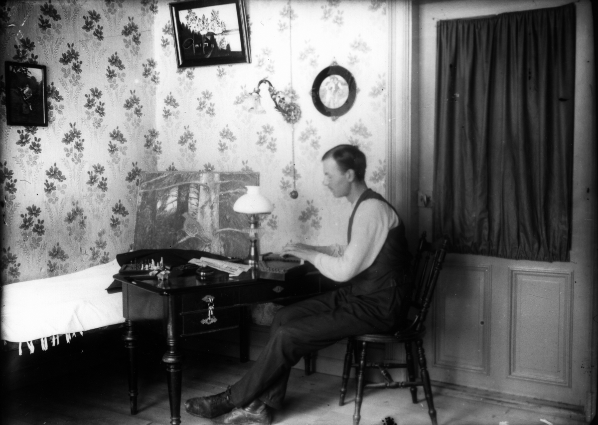 Mannen är obekant, men tavlan är målad av Erhard Nilsson och finns kvar i Målars, Lenninge 6:44.