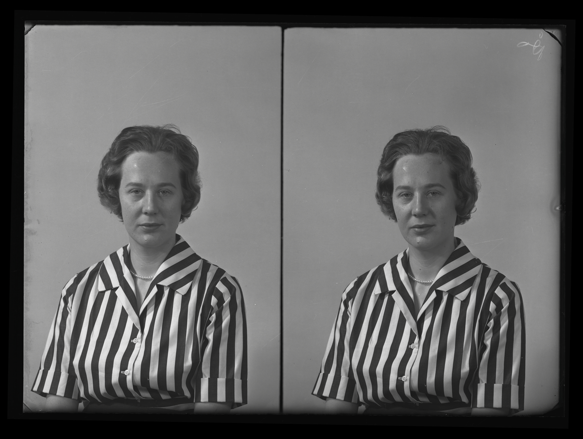 Porträtt, passfoto. Fröken Ulla Eriksson, Sofielund, Strömsholm. Ur Gustaf Åhmans samling.