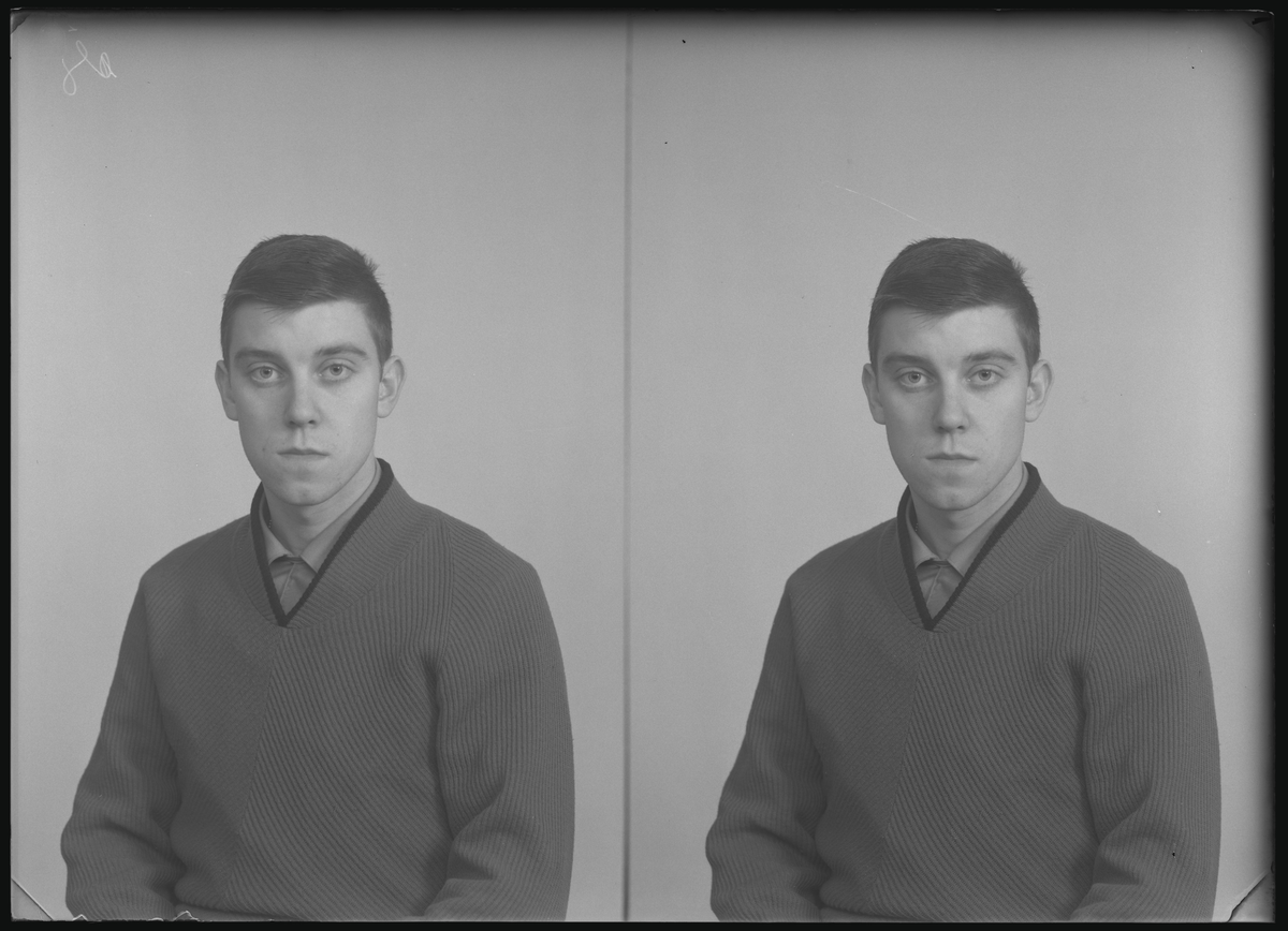 Mansporträtt-körfoto. Kjell Berggren, vallbygatan 32, Kolbäck. Ur Gustaf Åhmans samling.