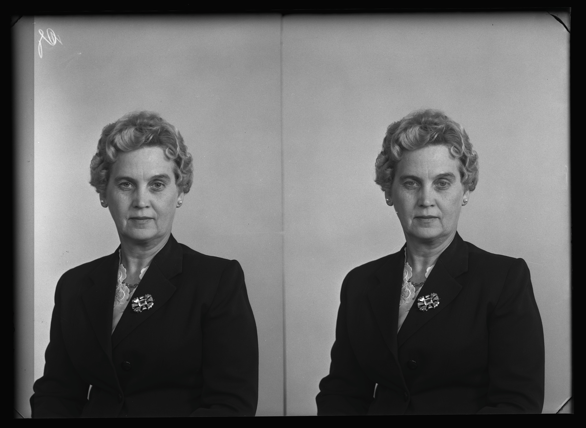 Kvinnoporträtt, pass, Fru Märta Andersson, Vänsta, Kolbäck.