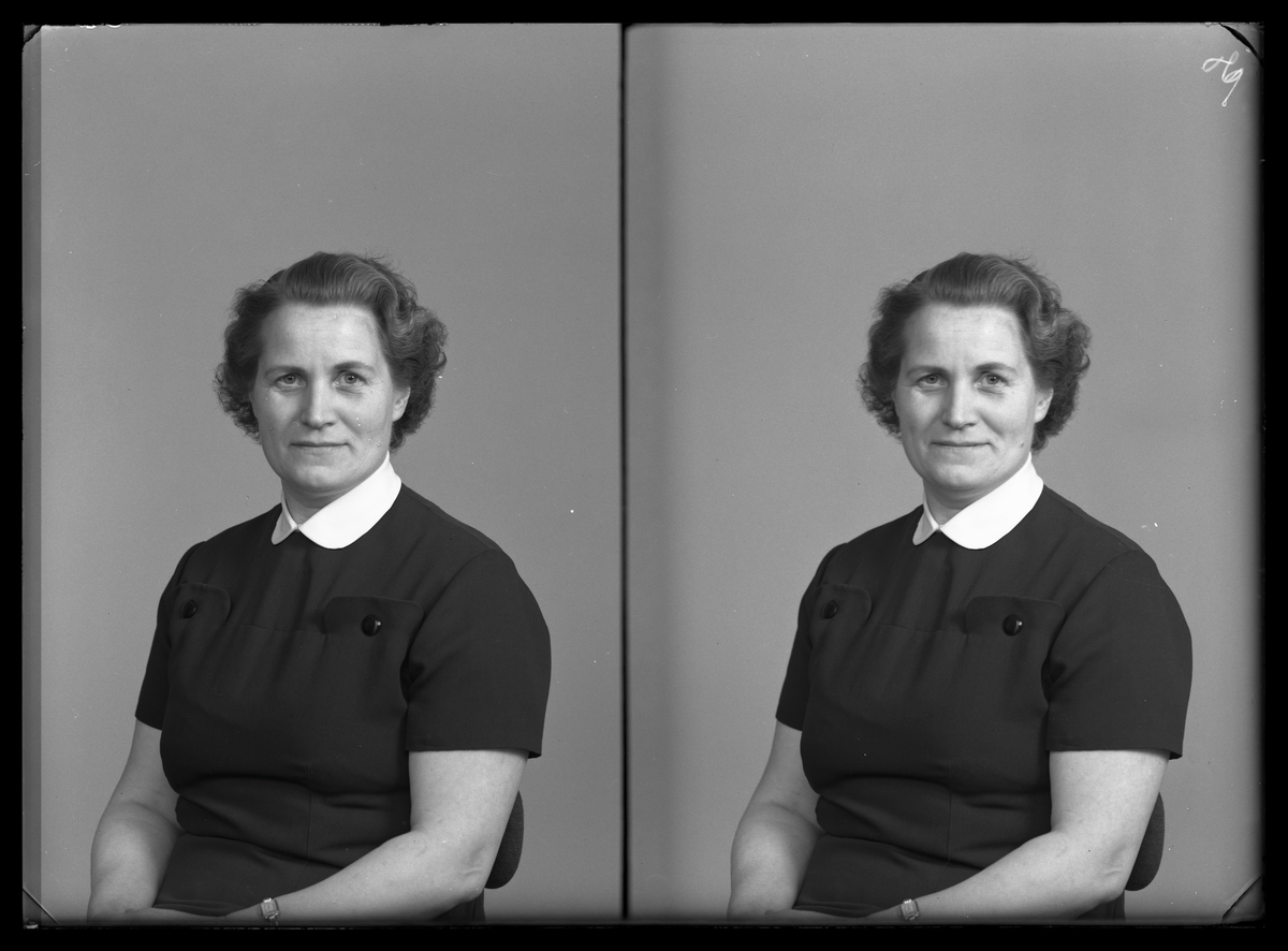 Porträtt, körfoto, Fru Svea Uddberg, Vänsta, Kolbäck.
