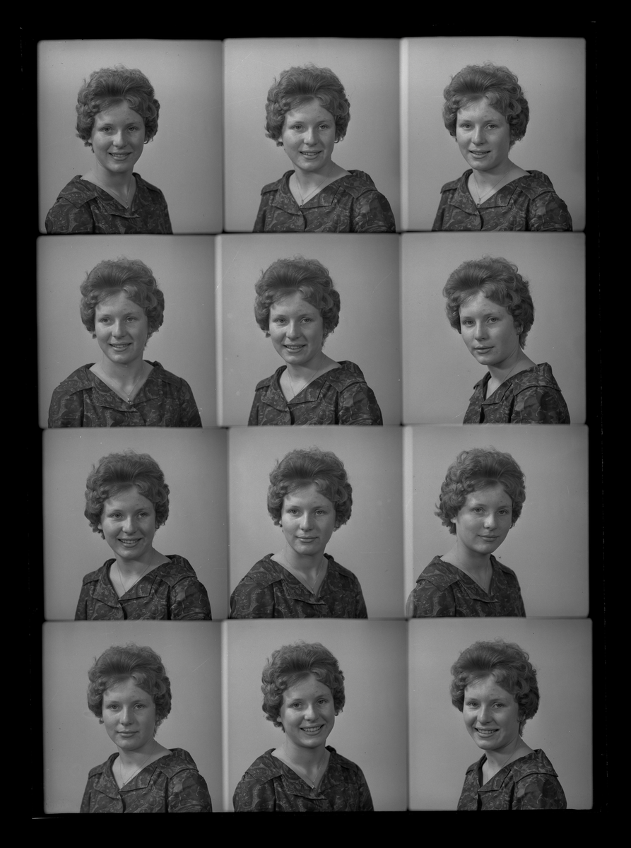 Kvinnoporträtt, polyfoto. Eva-Gunnel Verna, Mölntorp. Ur Gustaf Åhmans samling.