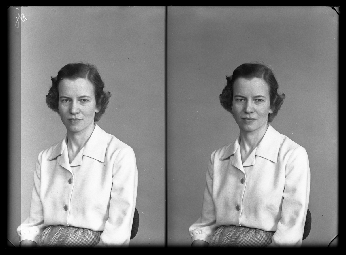 Porträtt, körfoto, Fru Karin Dahlberg, Vänsta, Kolbäck.
