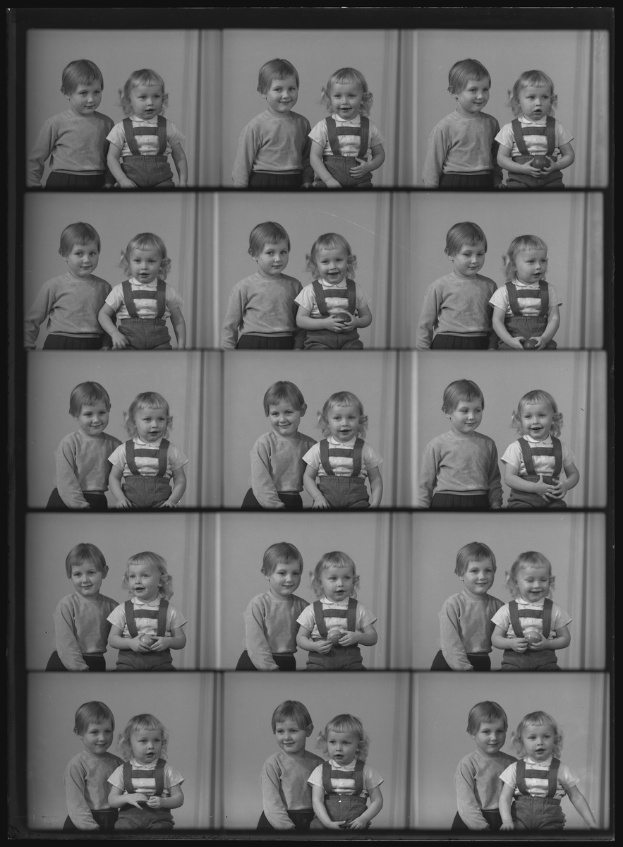 Grupporträtt, två barn. Fru Kerstin Olsson, Oxelby, Kolbäck. Ur Gustaf Åhmans samling.