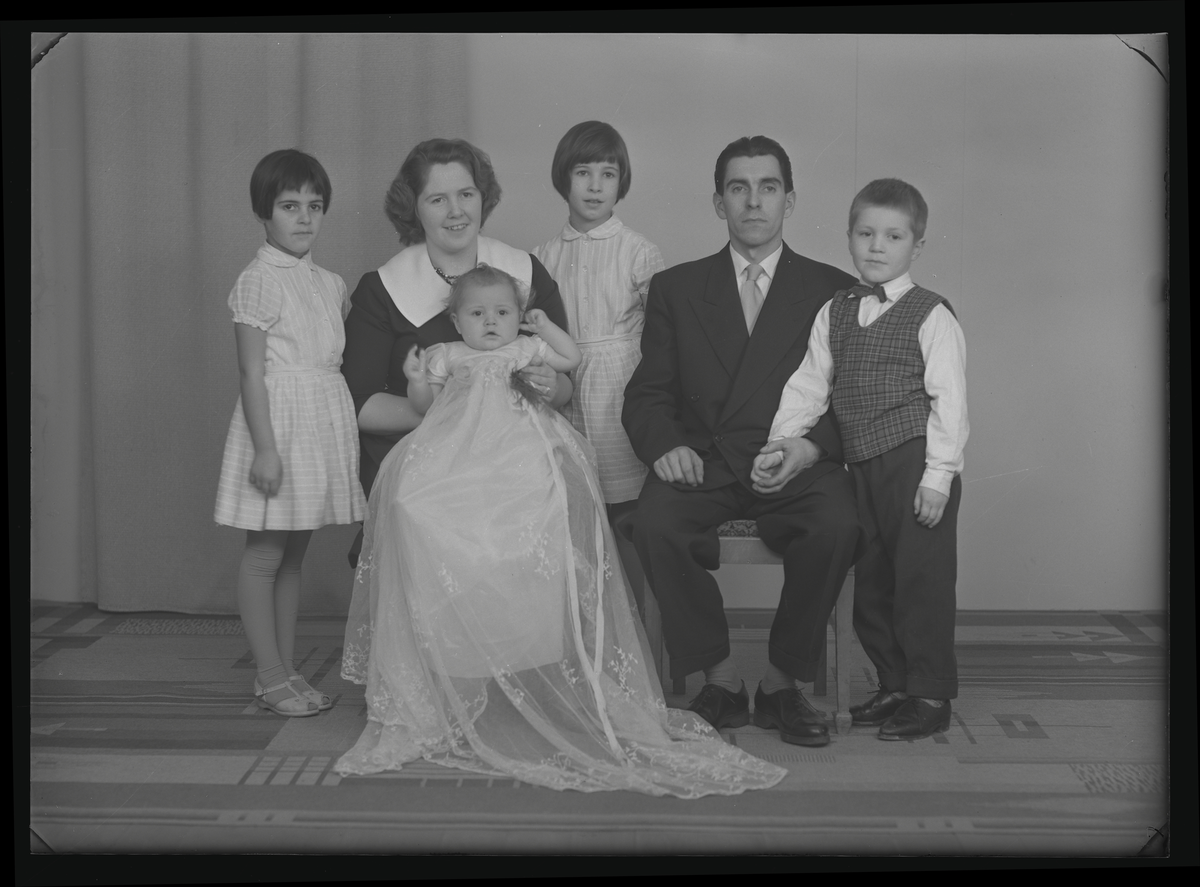 Grupporträtt, sex personer, Erik Sjökvist, Stiftelsen, Kolbäck. Ur Gustaf Åhmans samling.