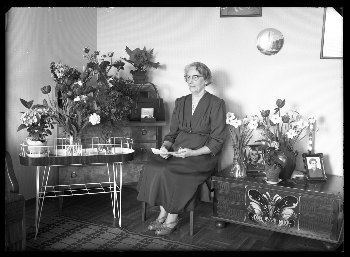 Kvinnoporträtt, 60-årsfoto. Fru Öhrn. Stationsgatan 12, Kolbäck.