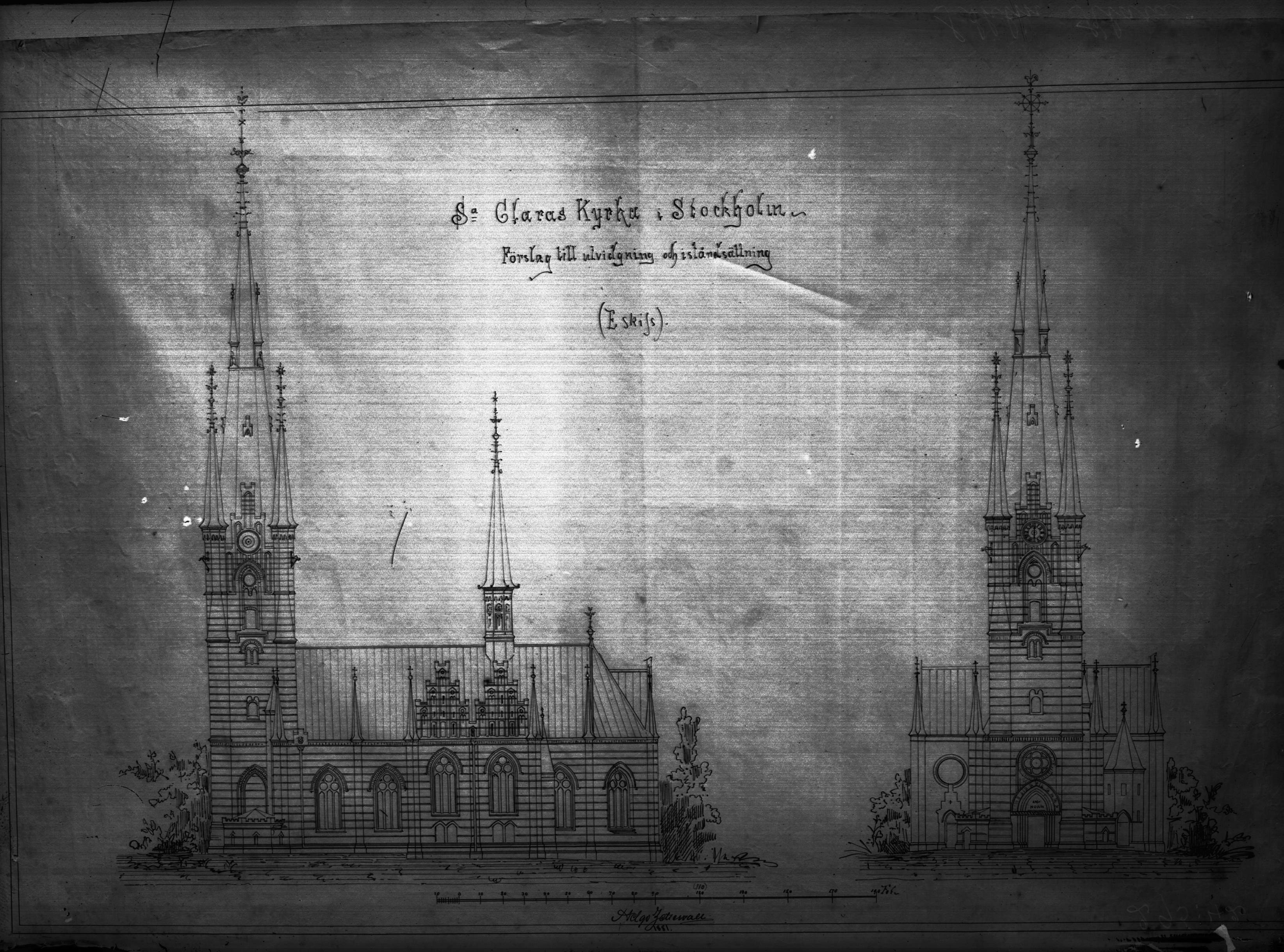 Förslag till ombyggnad. Foto efter ritning av Helgo Zetterwall 1881.