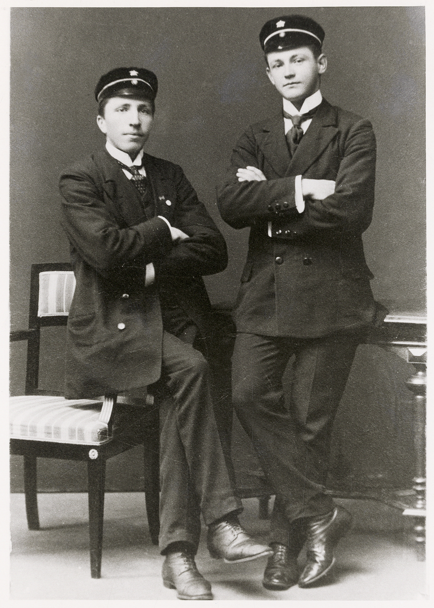 Ernst Bjersing (senare kronolänsman och landsfiskal) till höger, under studietiden.