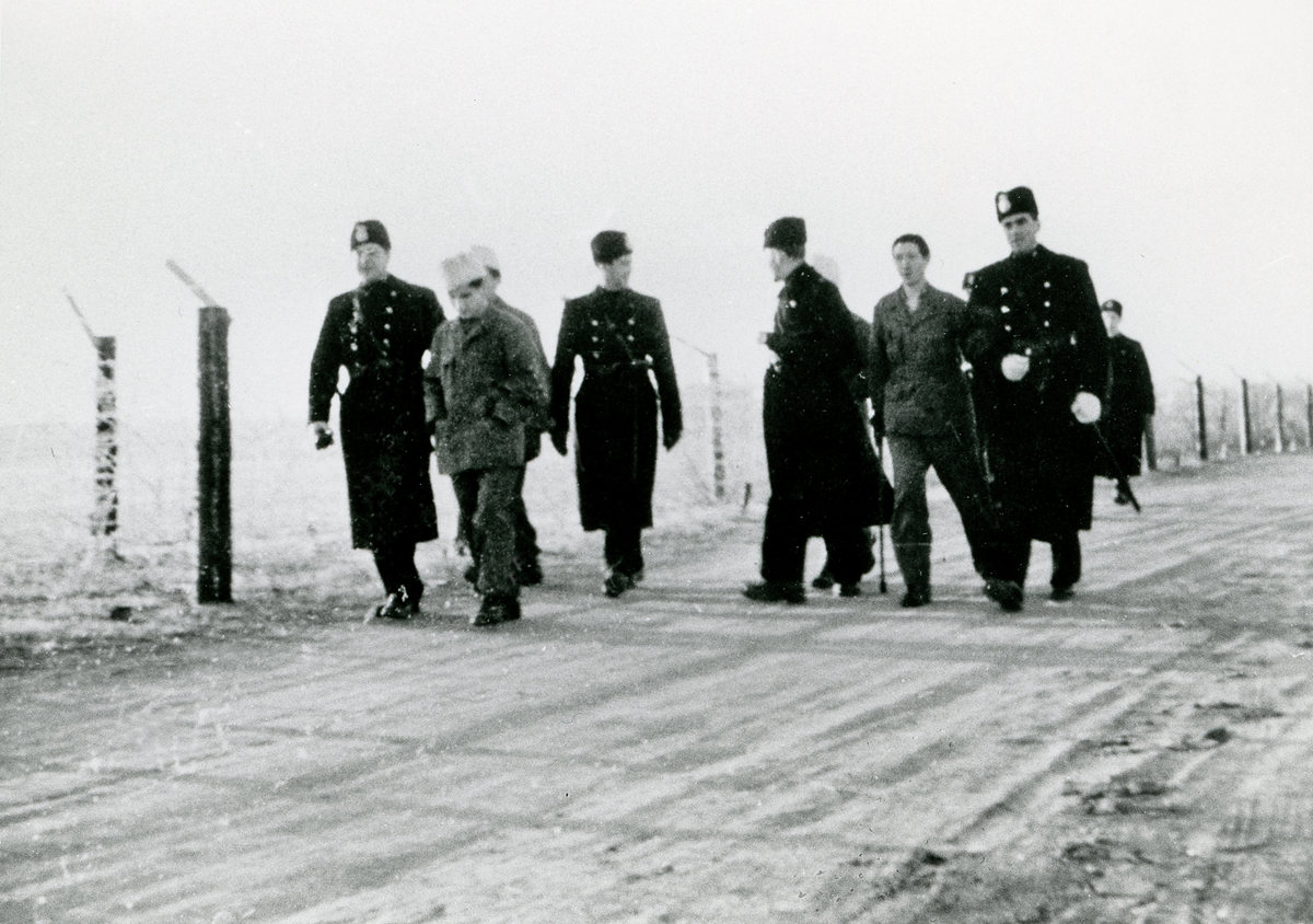 Man har tagit med några av fångarna på promenad (?) i det frostiga vädret.