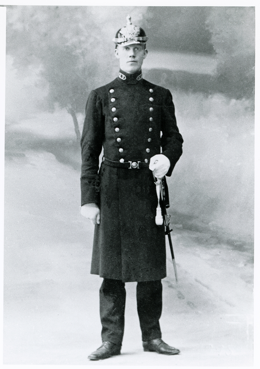 En okänd poliskonstapel i full paraduniform, Luleå ca 1914.