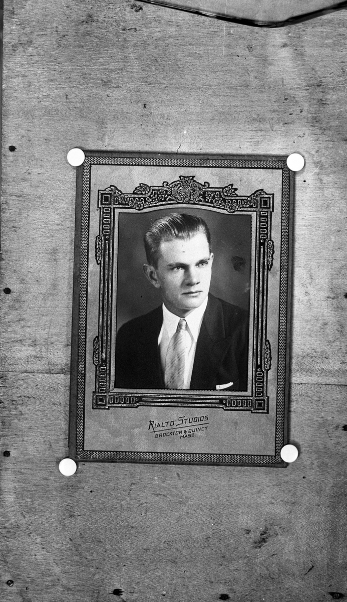 Foto av ett foto av en okänd man i kostym och ljus slips.