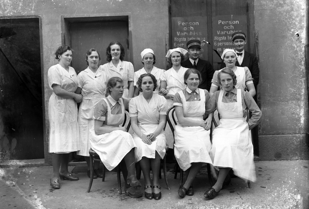 Foto av personal på Stadshotellet, Växjö (?), samlade på en innergård.