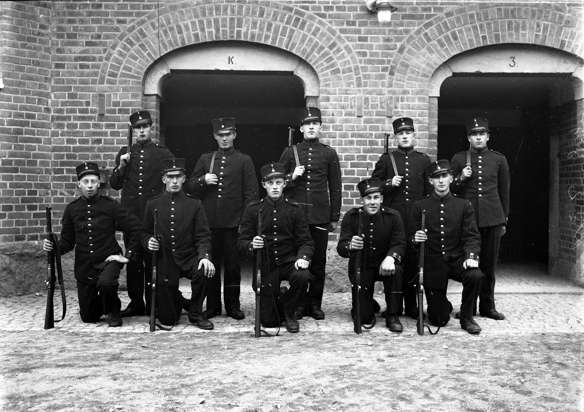 Gruppfoto utanför kasern.