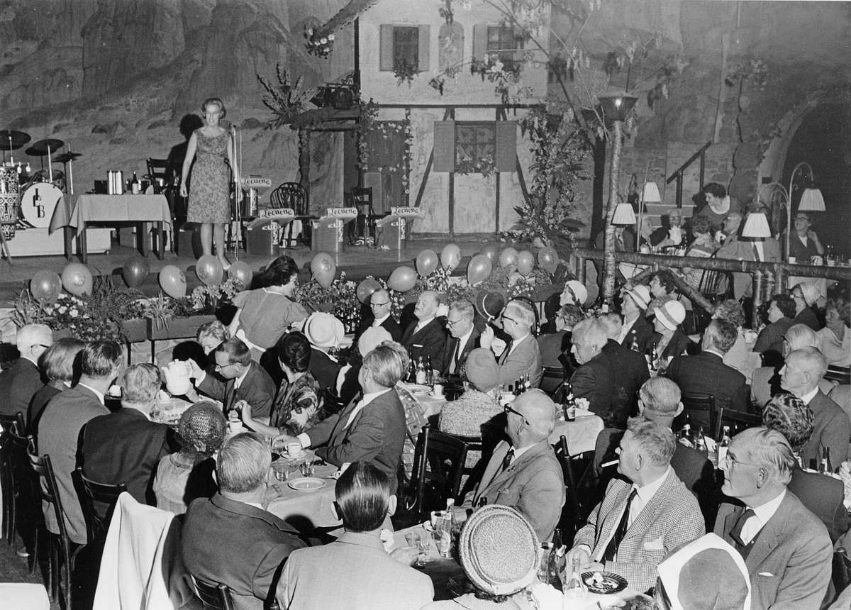 Maja Wadner, från poststyrelsens PR-avdelning, underhåller med sång
