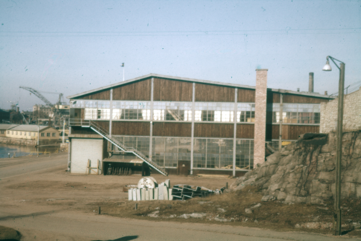 Titel: Bilden visar byggnaden nr 140 (Plåtslagerihallen) på örlogsvarvet i Karlskrona sett från Kansligatan.