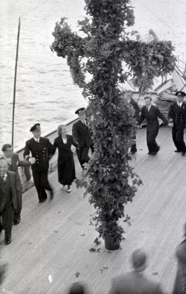 Midsommarfirande ombord depåfartyget PATRICIA 1940.