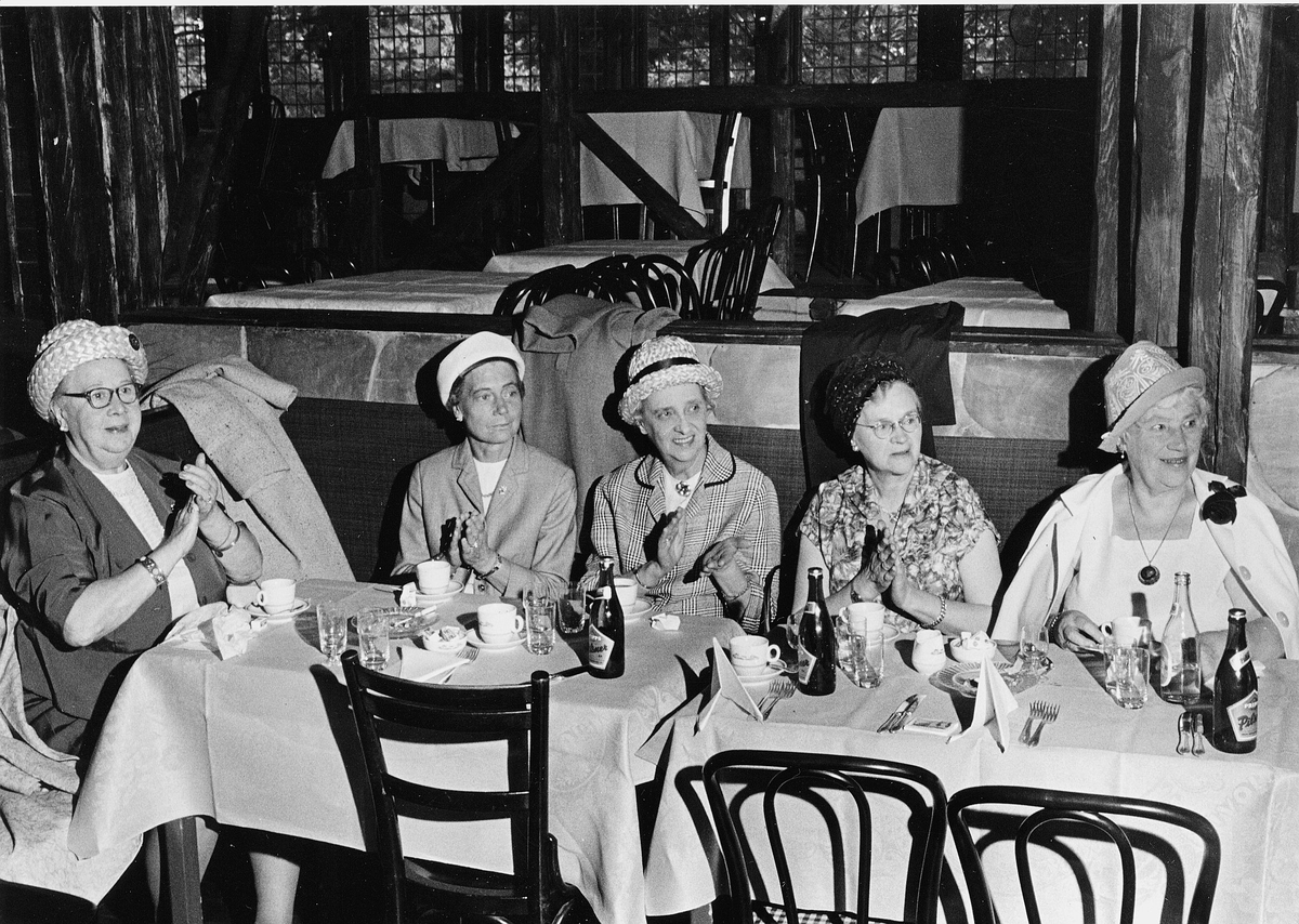 Glada postpensionärer, fr v fröken Anna Thor, fru Svea Waern, fru