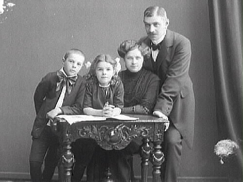 Familjebild. Köpman Oscar Pehrson med familj. Barnen heter Håkan och Greta och hustrun Ellen f. Almskog.